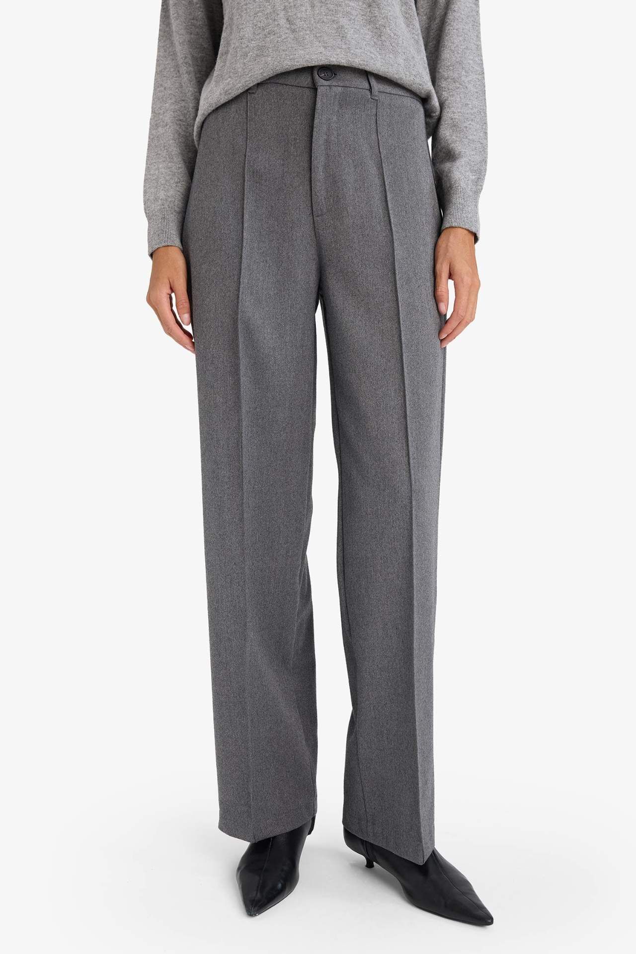 Straight Fit Yüksek Bel Düz Paça Twill Pantolon