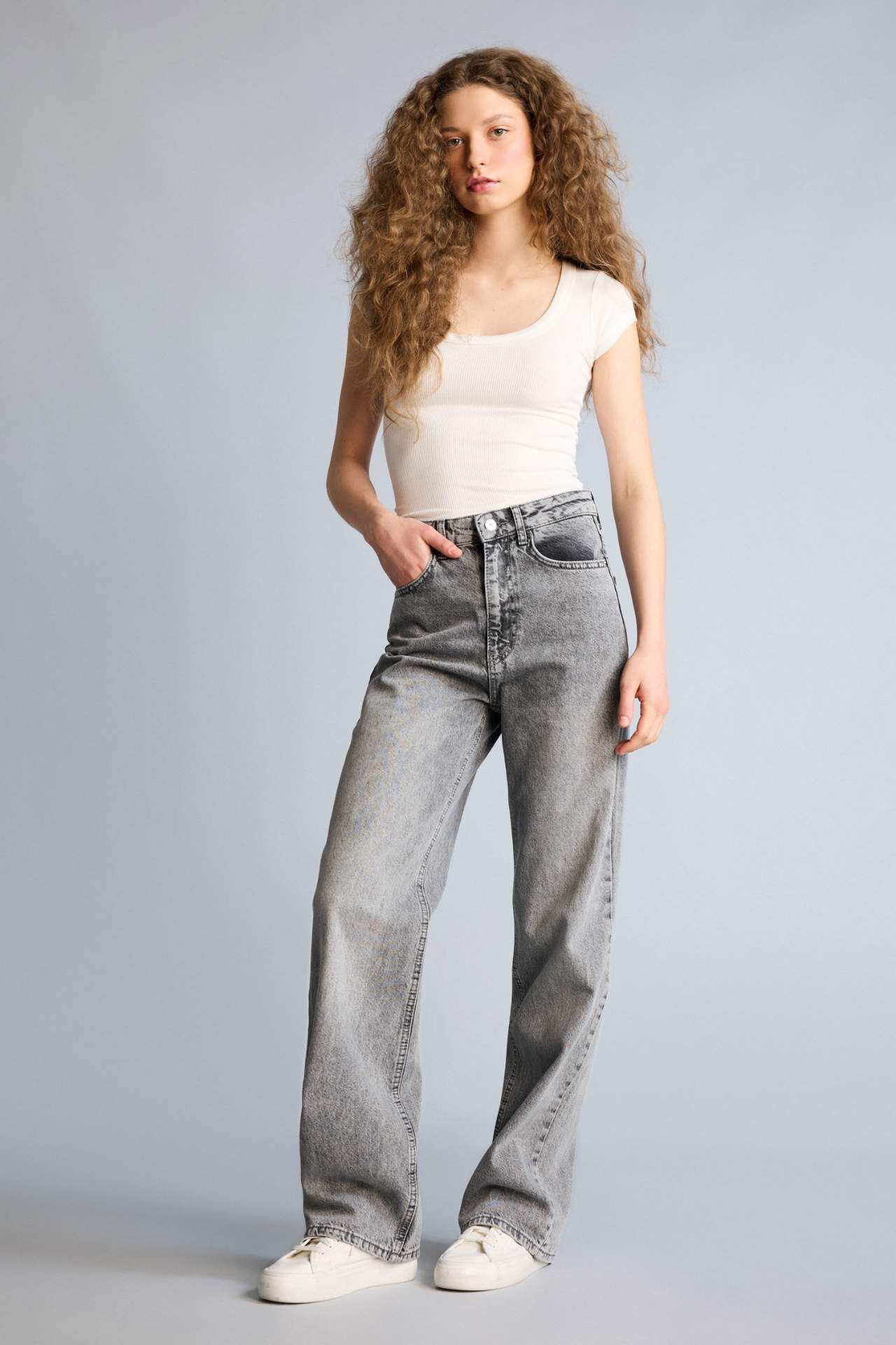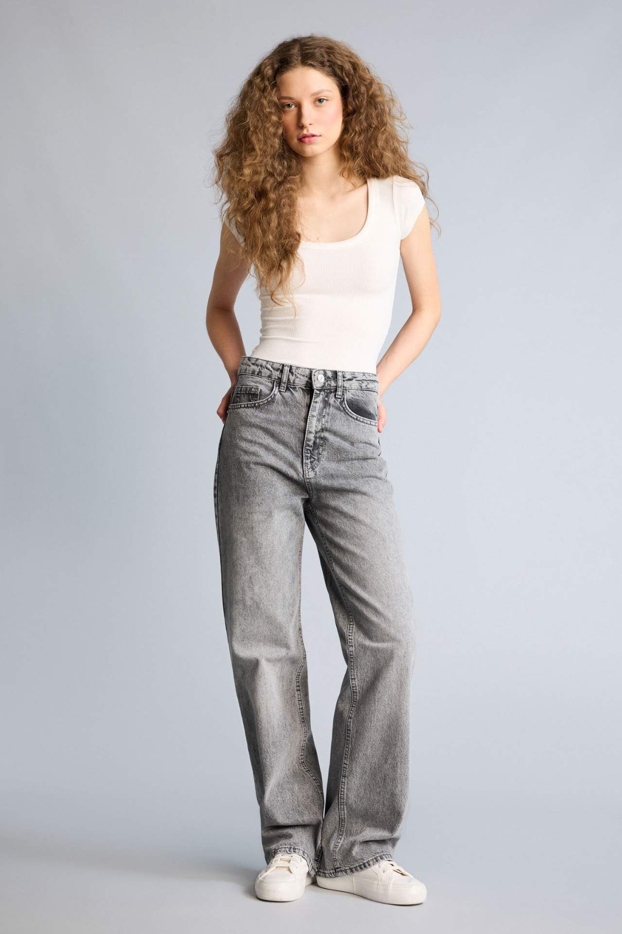 DeFacto Straıght Fıt Yüksek Bel Uzun Jean Yıkamalı Pantolon