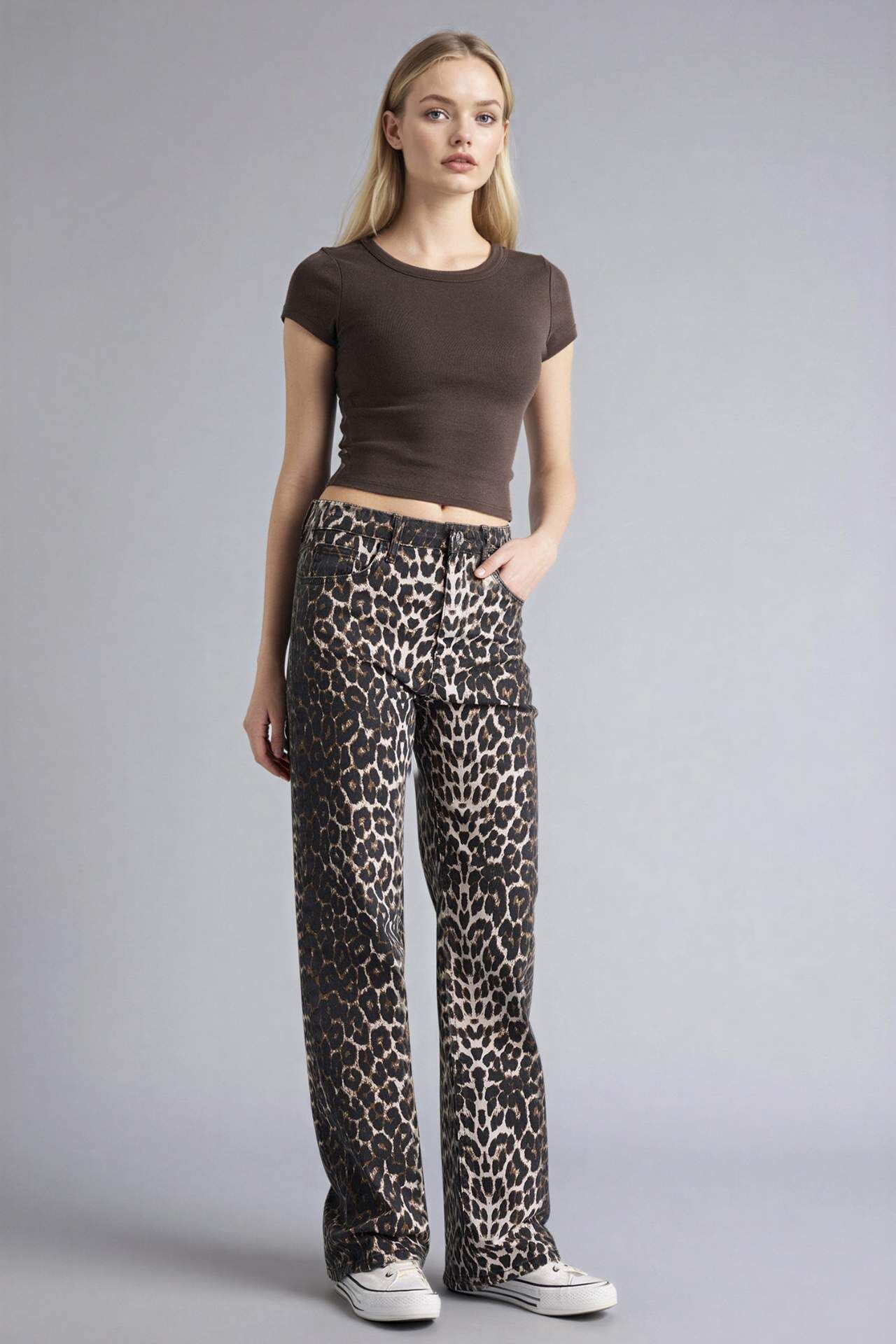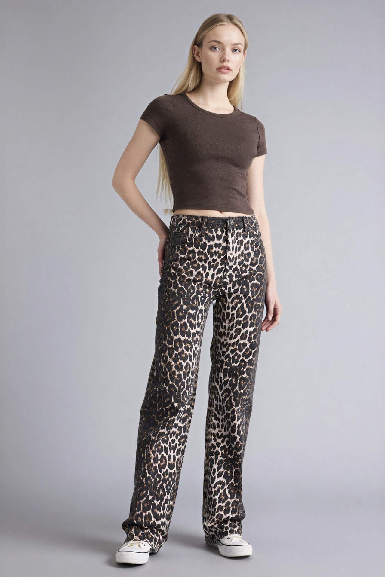 Straight fit ve yüksek bel tasarımıyla şıklığı konforla buluşturan leopar desenli gabardin pantolon, modern ve iddialı bir görünüm sunar. Dayanıklı kumaşı ve rahat kesimi sayesinde gün boyu şık ve rahat hissetmenizi sağlar. Pamuk 99%,Elastan 1% Manken Bedeni: Göğüs: 84 Boy: 1,74 Basen: 91 Bel: 61