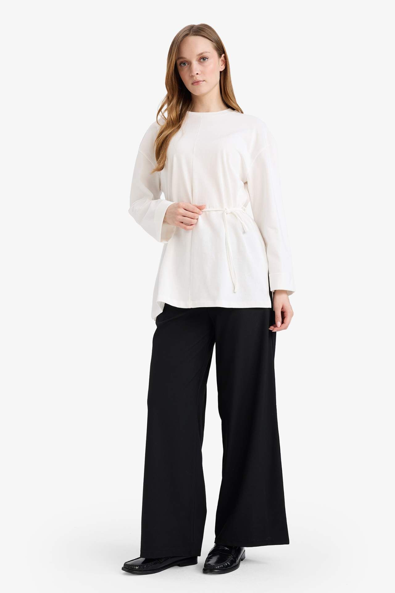 Straight Wide Geniş Paça Pantolon, modern wide-leg kesimiyle şık ve rahat bir görünüm sunar. Yumuşak ve kaliteli kumaşıyla gün boyu konfor sağlar. Elastan 2%,Viskoz 37%,Poliester 61% Manken Bedeni: Göğüs: 84 Boy: 1,72 Basen: 92 Bel: 61