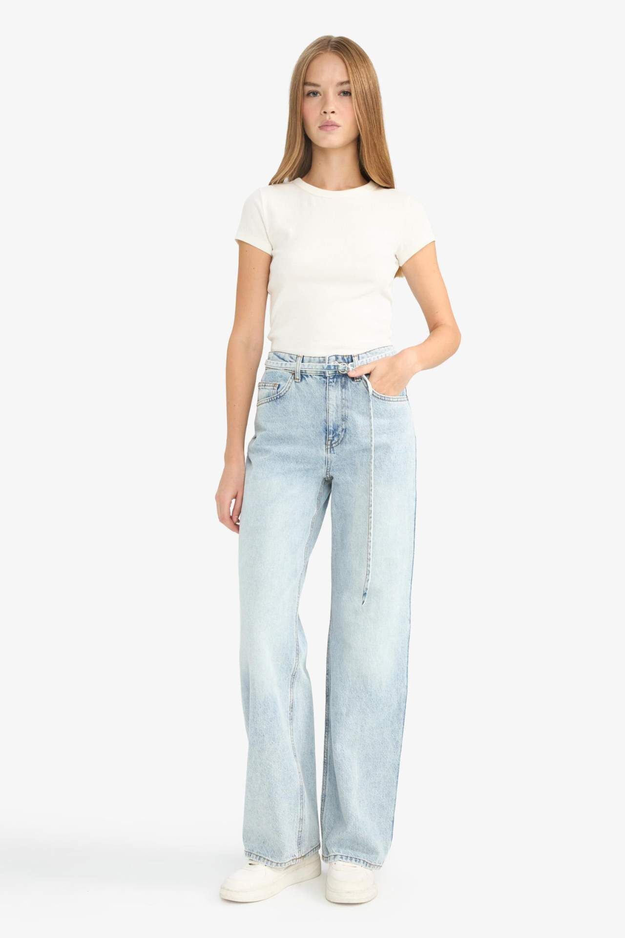 Yüksek bel ve straight wide kesimiyle bu düz paça uzun jean pantolon, modern ve rahat bir siluet sunar. Yıkamalı denim dokusuyla günlük kombinlere cool bir hava katar. Pamuk 100%,Pamuk 100%,Pamuk 100%,Pamuk 100%,Pamuk 100%,Pamuk 100%,Pamuk 100%