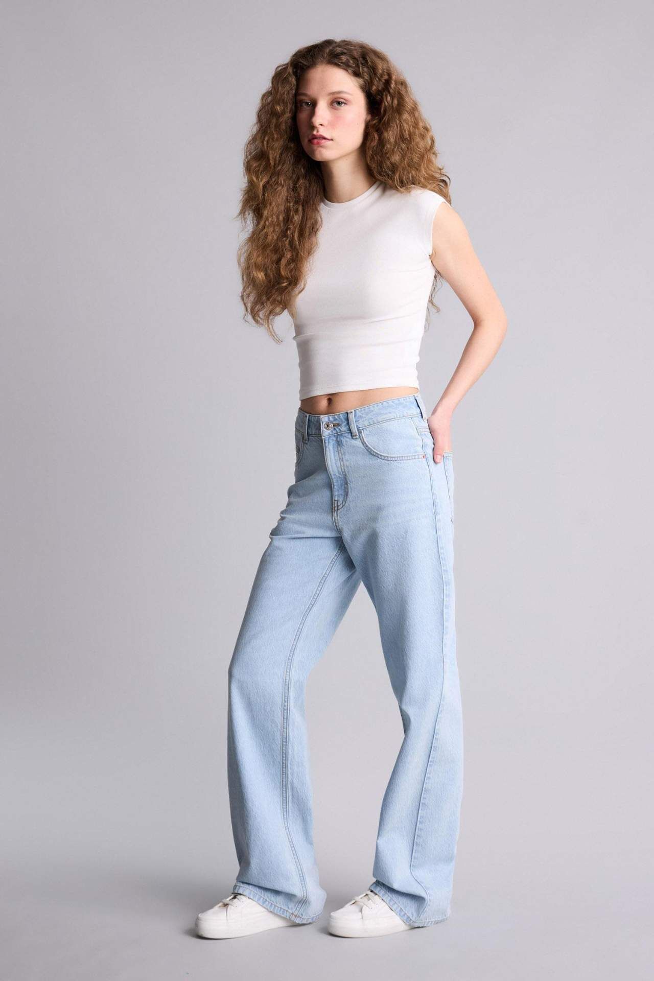 DeFacto Straıght Wıde Yüksek Bel Geniş Paça Uzun Jean Kar Yıkamalı Pantolon