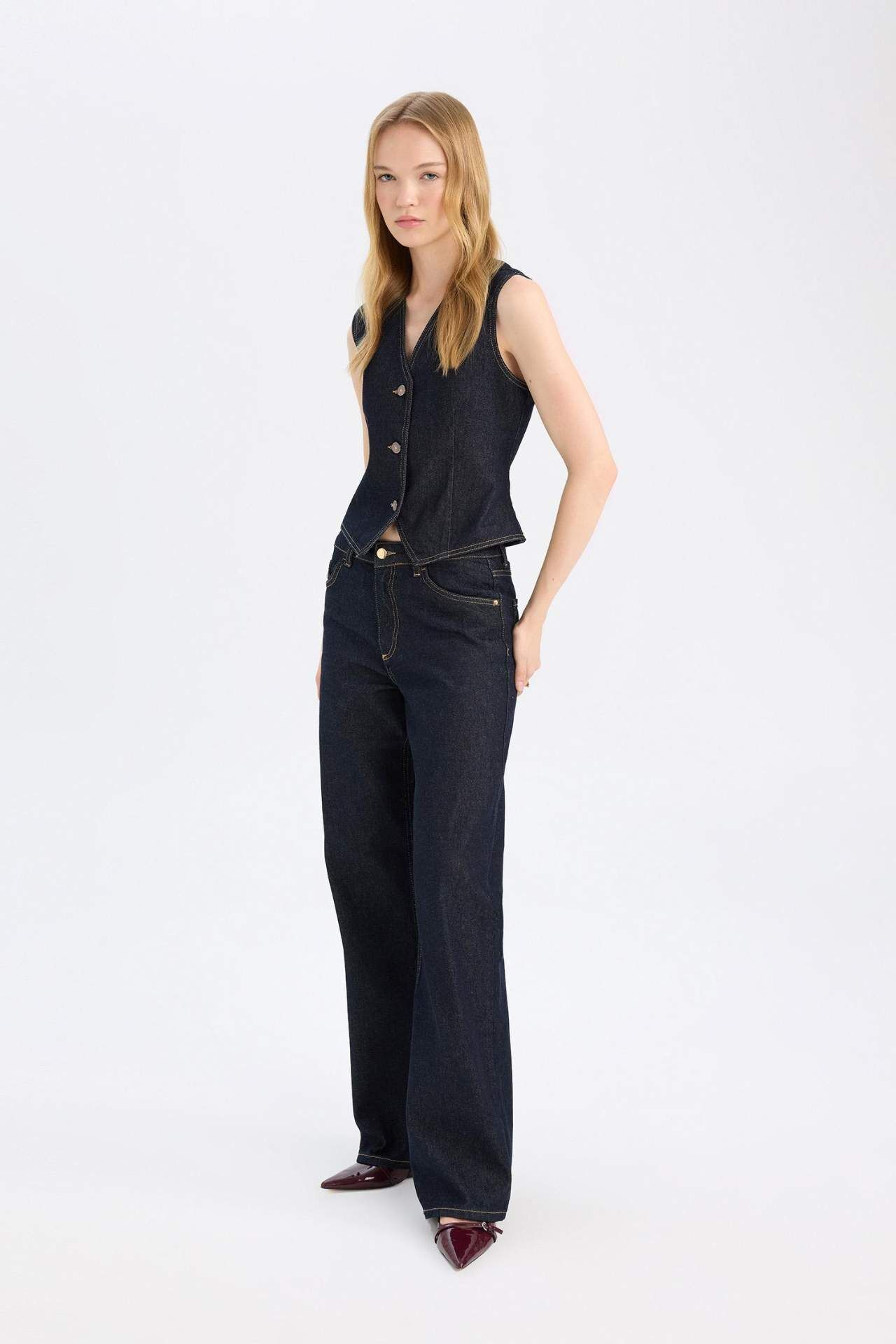 Şık ve rahat, Straight Wide Yüksek Bel Uzun Jean Pantolon, gardırobunuzun vazgeçilmezi olmaya aday. Geniş kesimi ve yüksek bel detayı ile hem şıklığı hem de konforu bir arada sunuyor. Farklı kombinasyonlarla tarzınızı yansıtmanız için ideal bir seçim. Pamuk 100%,Pamuk 100%