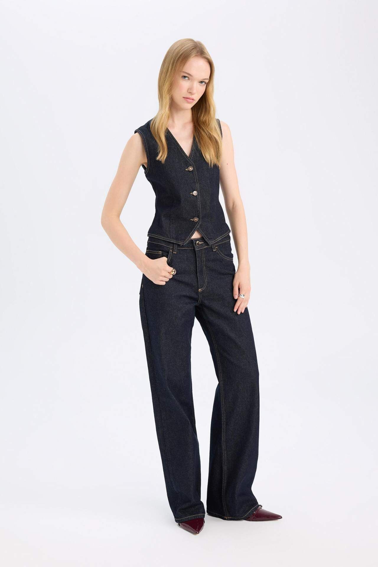 DeFacto Straight Wide Yüksek Bel Uzun Jean Pantolon D5123AX24AUNM34