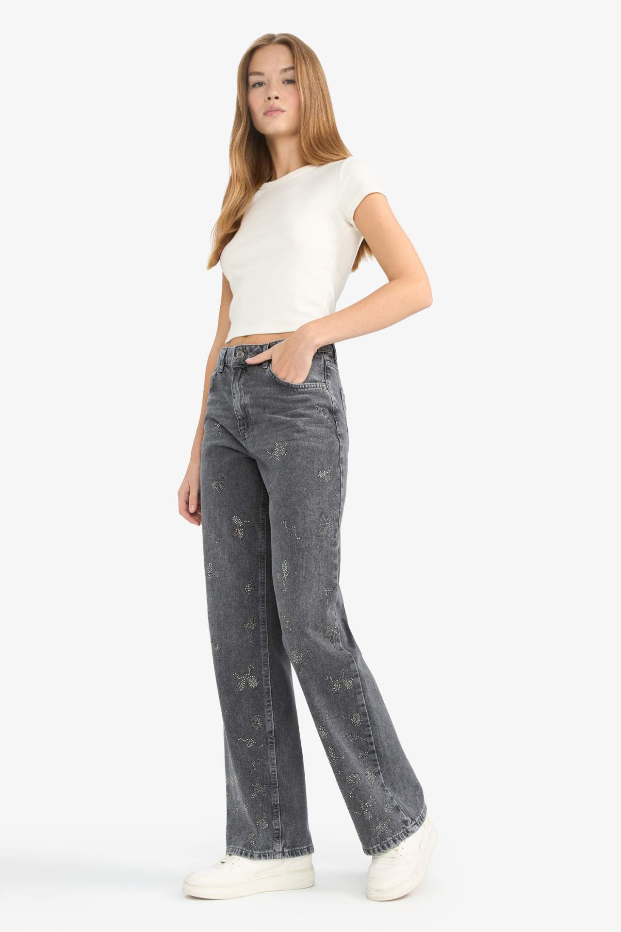 Straight wide kesimi ve yüksek bel tasarımıyla bu yıkamalı jean pantolon, modern ve rahat bir stil sunar. Uzun boyuyla şıklığı tamamlar ve günlük kombinlere kolayca uyum sağlar. Pamuk 100%,Pamuk 100%,Pamuk 100%,Pamuk 100%,Pamuk 100%,Pamuk 100%,Pamuk 100% Manken Bedeni: Göğüs: 82 Boy: 1,77 Basen: 88 Bel: 59