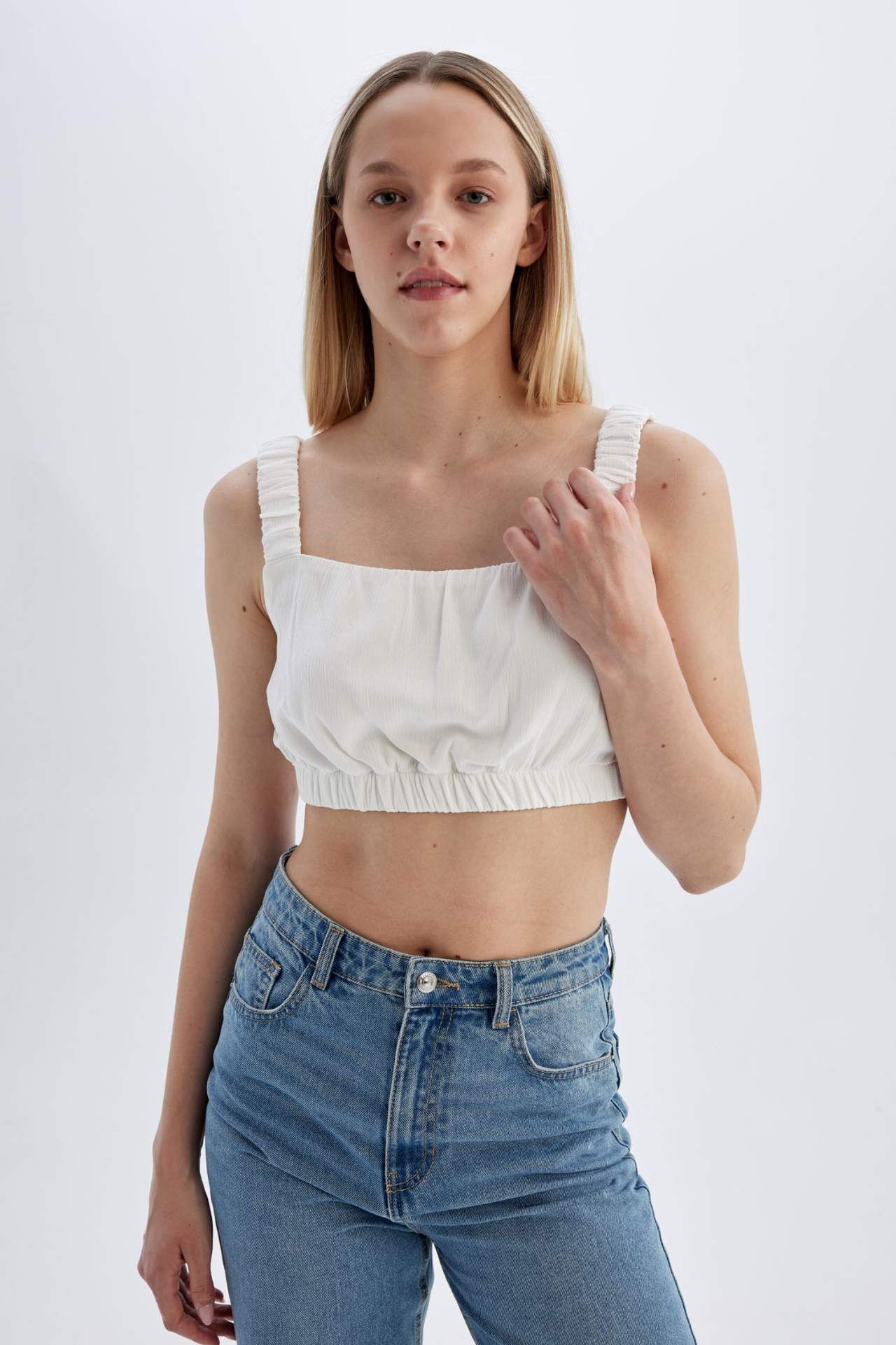 DeFactoFit Straplez Krinkıl Viskon Kolsuz Bluz