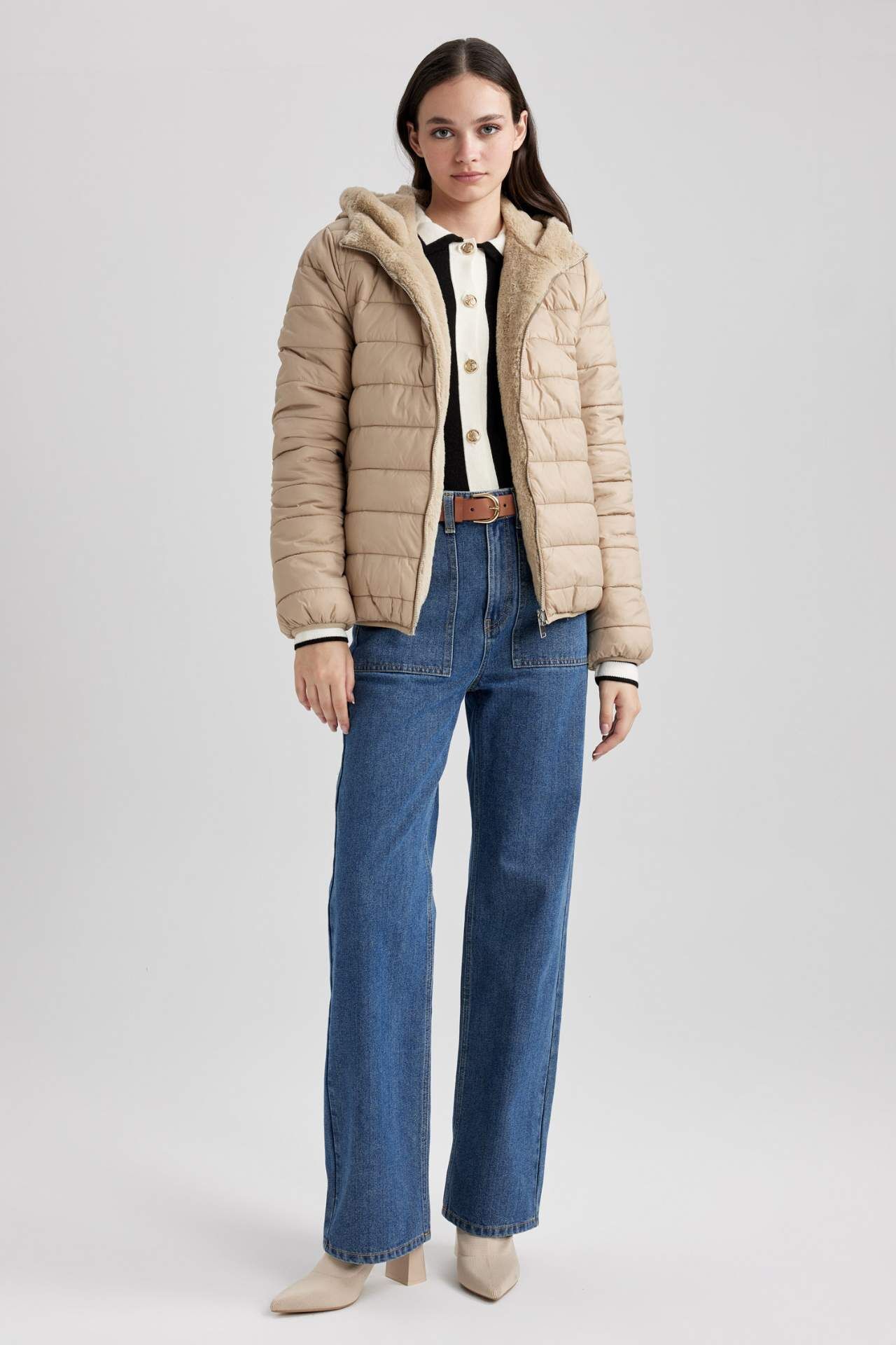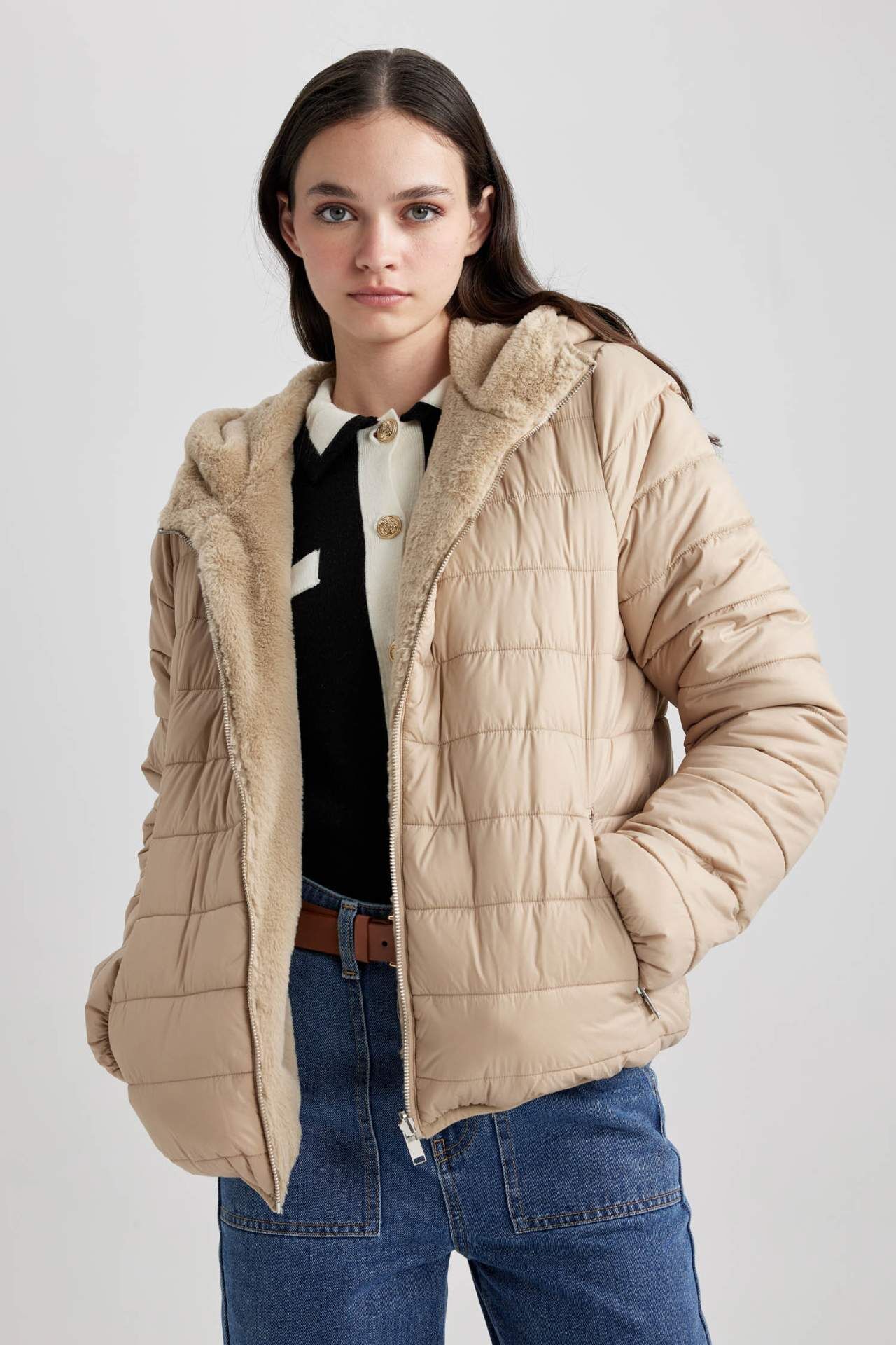 Soğuk kış günlerinizde sizi ısıtacak, kapitoneli ve fermuarlı, kapüşonlu sıcak tutan içi pelüş astarlı özelliği ile son zamanların en trend tesettür dış giyim modeli rahat, sentetik astar ve suni kürklü kumaşı ile tüm kombinlerinizde kullanabileceğiniz DeFacto Kadın Su Geçirmez Kapüşonlu Çift Taraflı Şişme Mont. Poliamid 100%,Poliester 100%,Poliester 100%,Poliester 100%