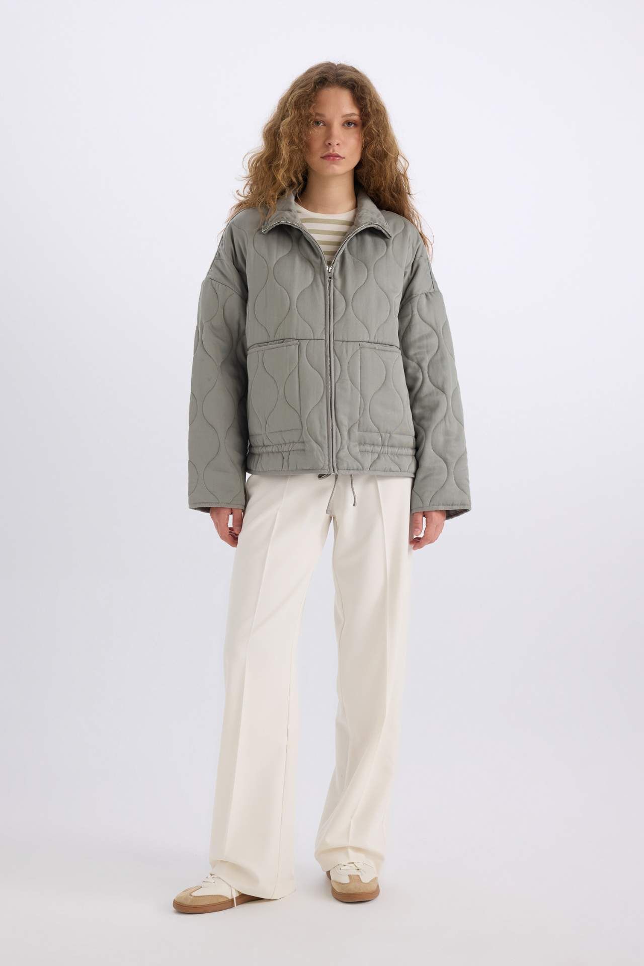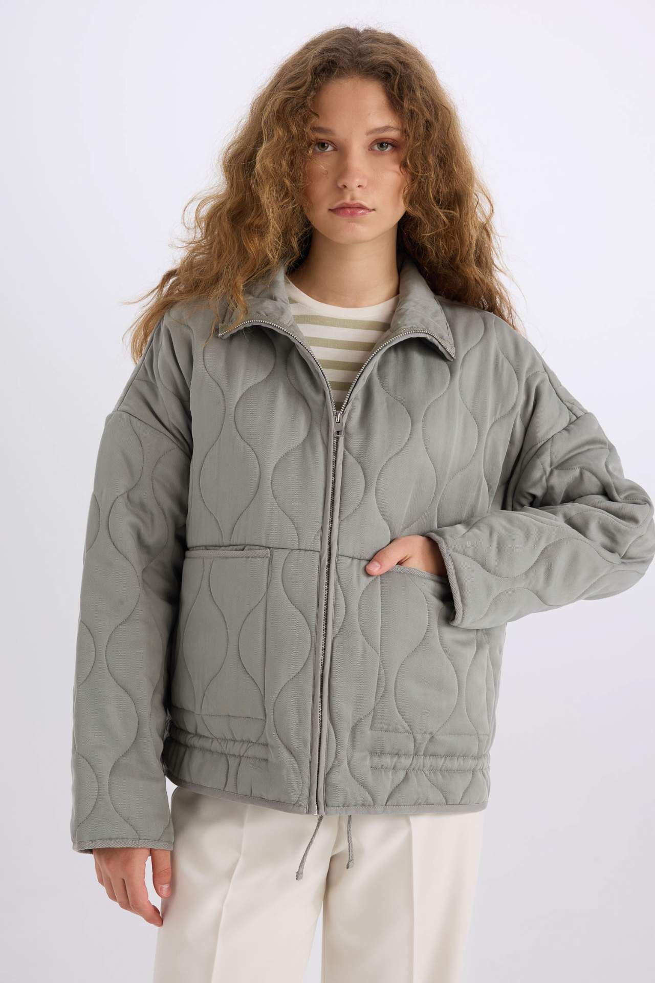 DeFacto Su Geçirmez Polo Yaka Fermuarlı Cepli Kapitonelli Mevsimlik Mont