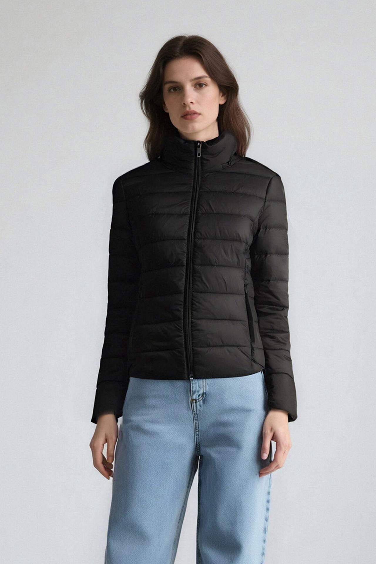 Su Geçirmez Regular Fit Dik Yaka Fermuarlı Şişme Mont E8689AX25AUBK27