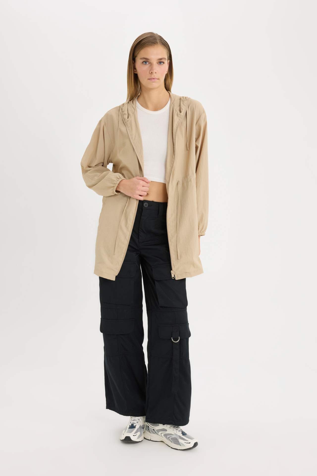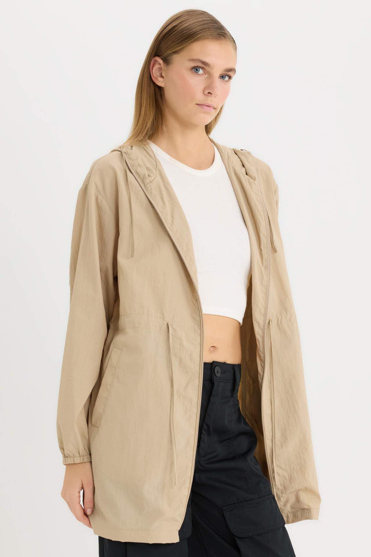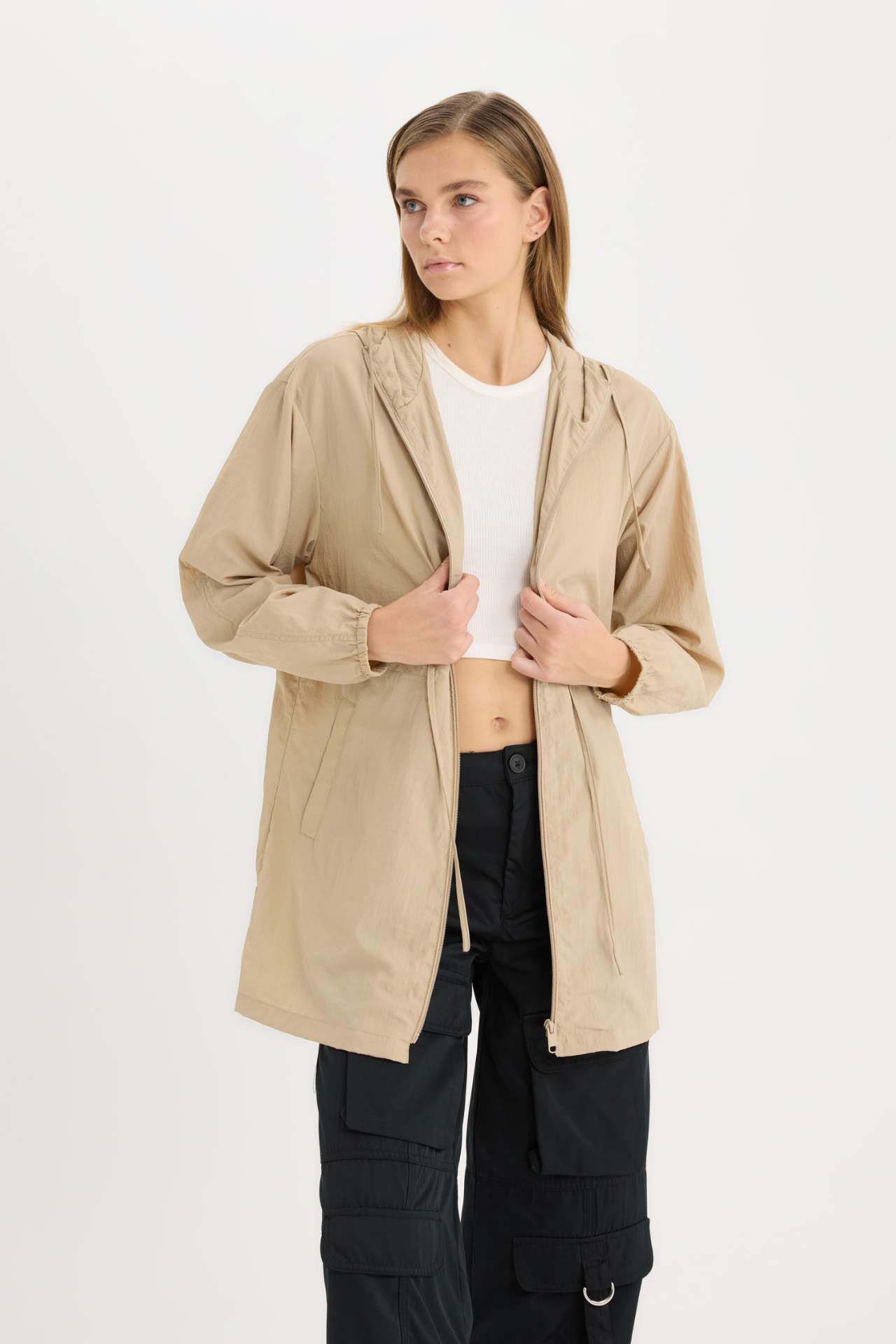 DeFacto Su Geçirmez Regular Fit Kapüşonlu Hafif Uzun Yağmurluk