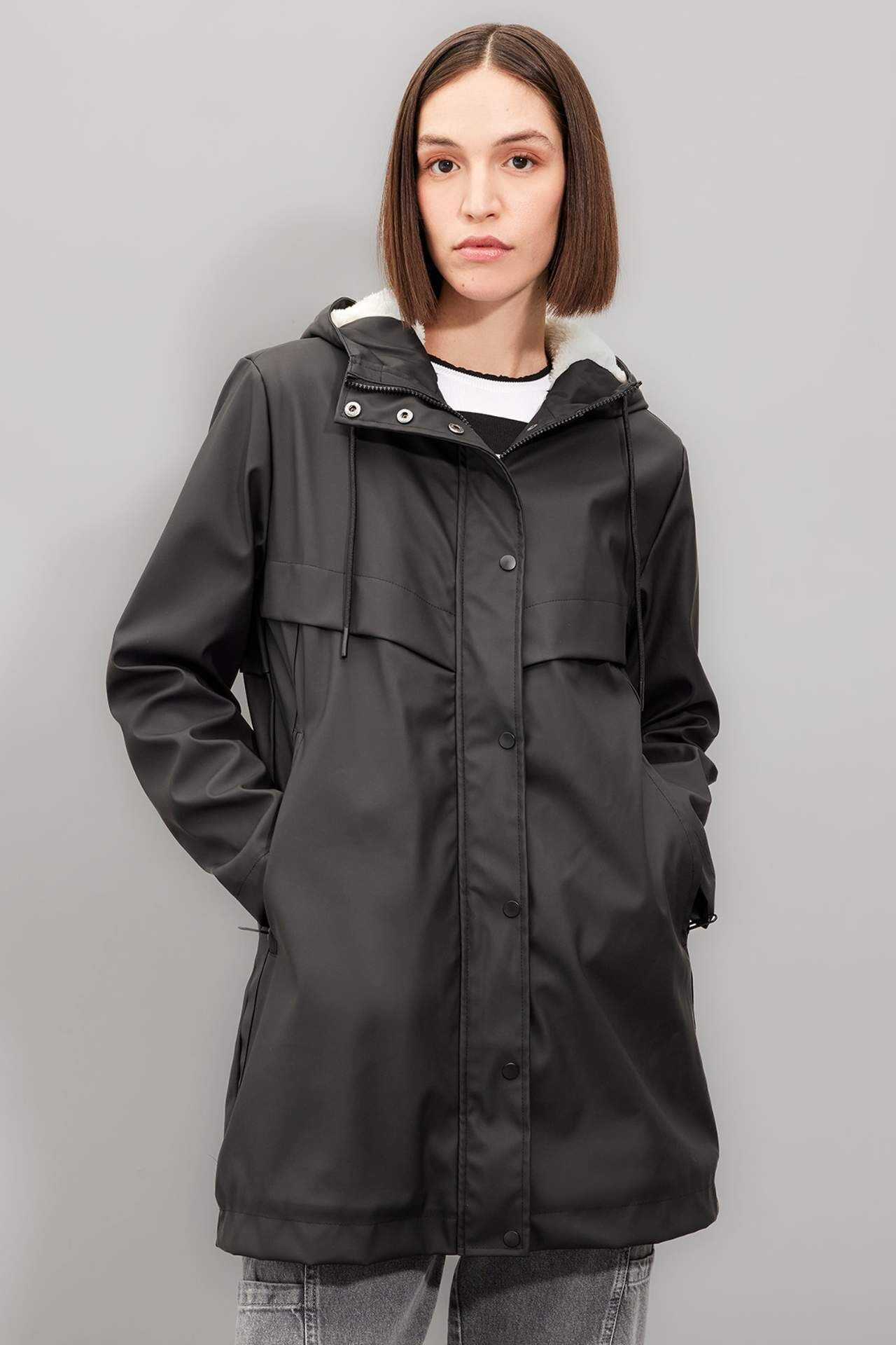 DeFacto Su Geçirmez Regular Fit Kapüşonlu Suni Kürk Astarlı Suni Deri Yağmurluk