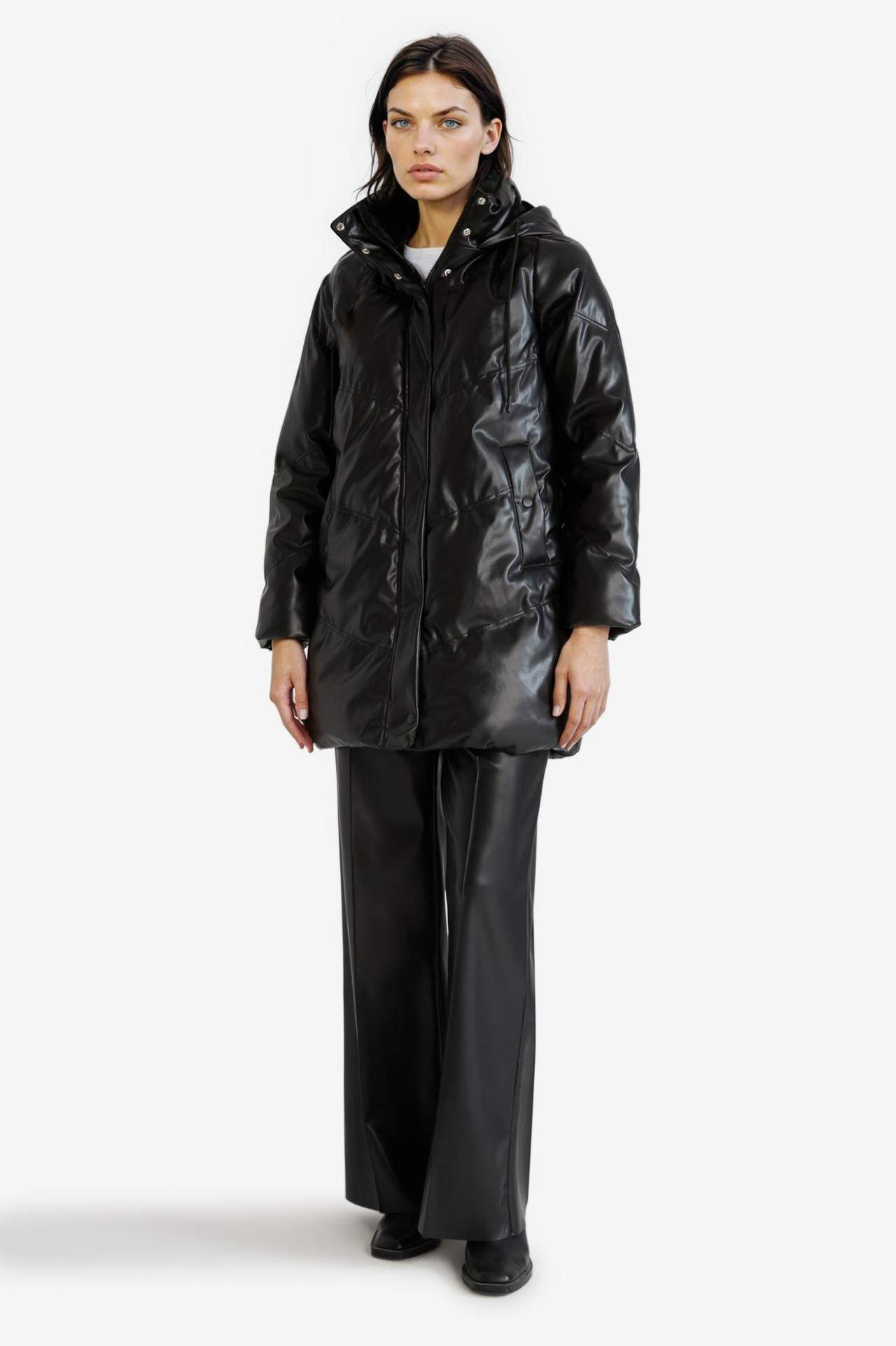 Su Geçirmez Relax Fit Kapüşonlu Suni Deri Parka
