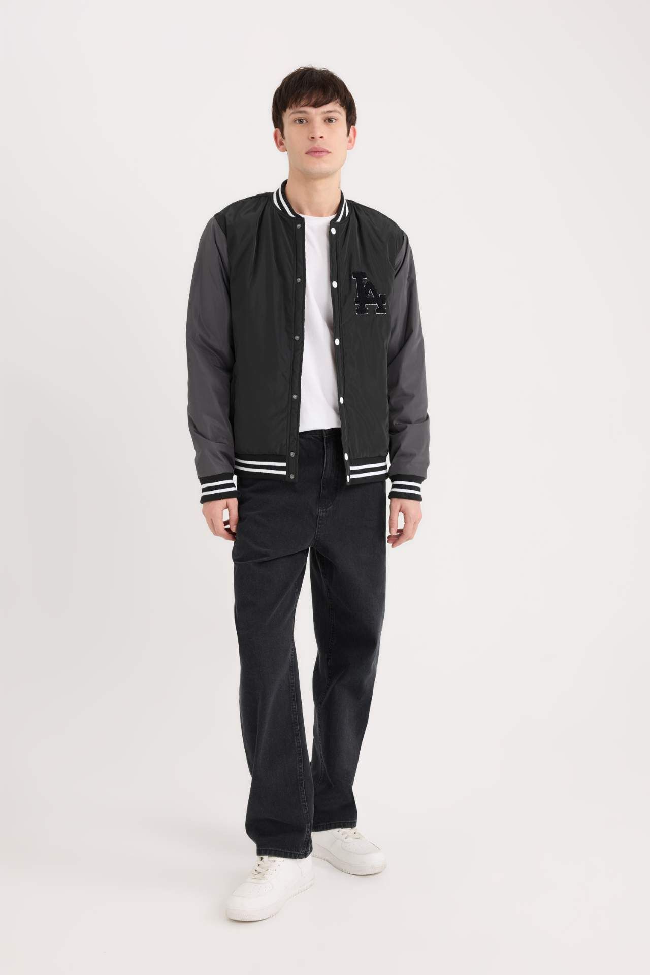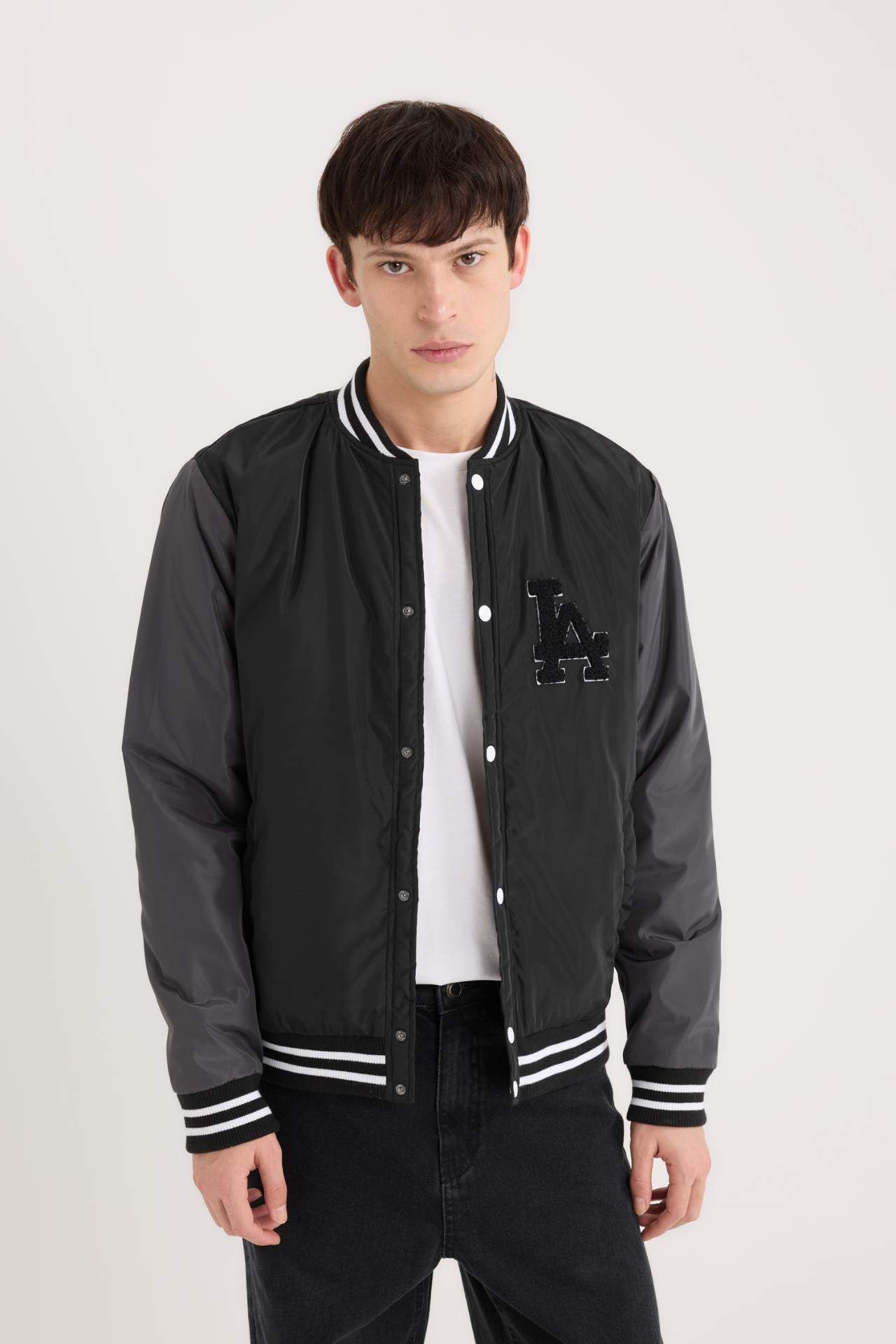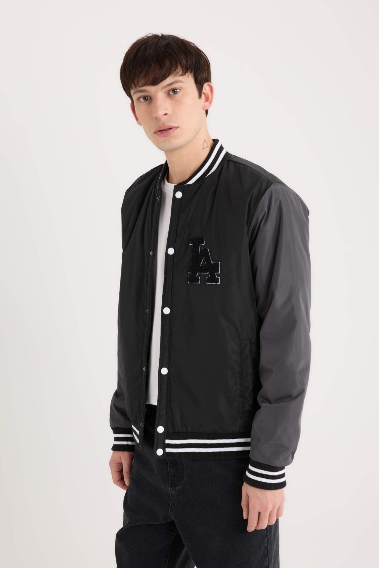 DeFacto Su İtici Bomber Mont Ceket Kolej Yaka Çıtçıtlı Çift Cepli Mevsimlik