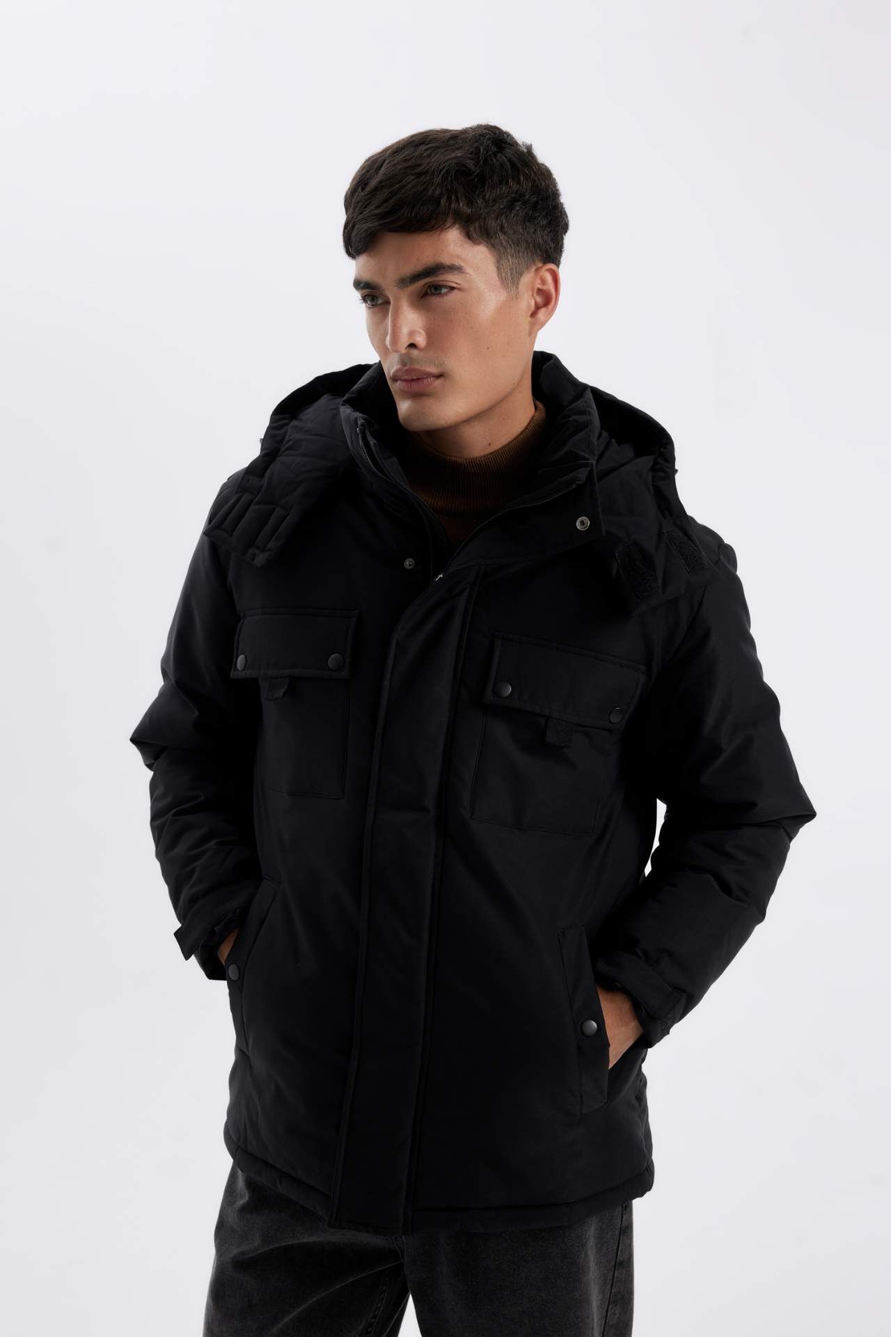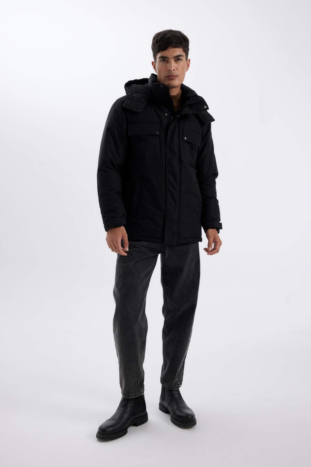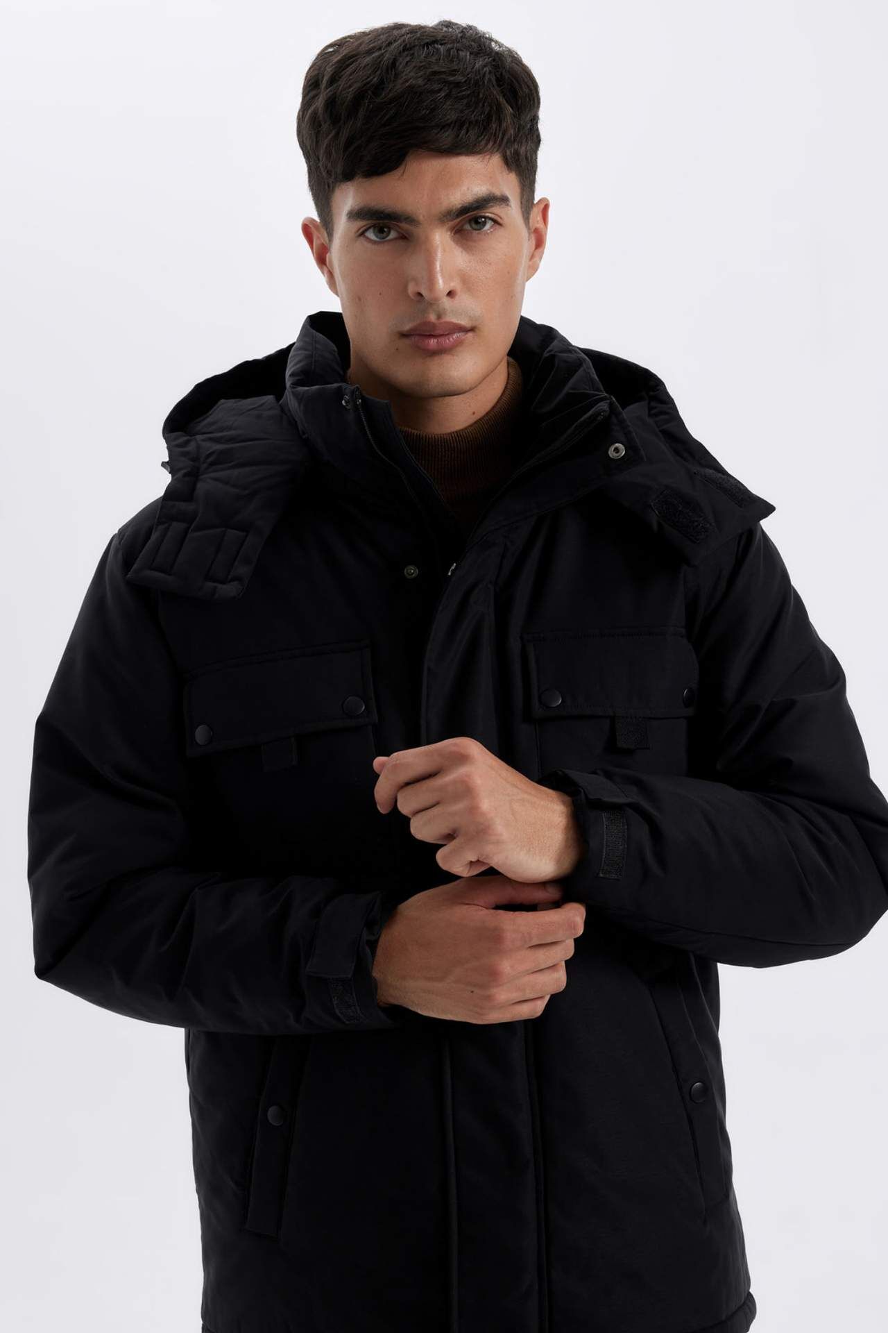 DeFacto Su İtici Regular Fit Çıkarılabilir Kapüşonlu Fermuarlı Cepli Mont