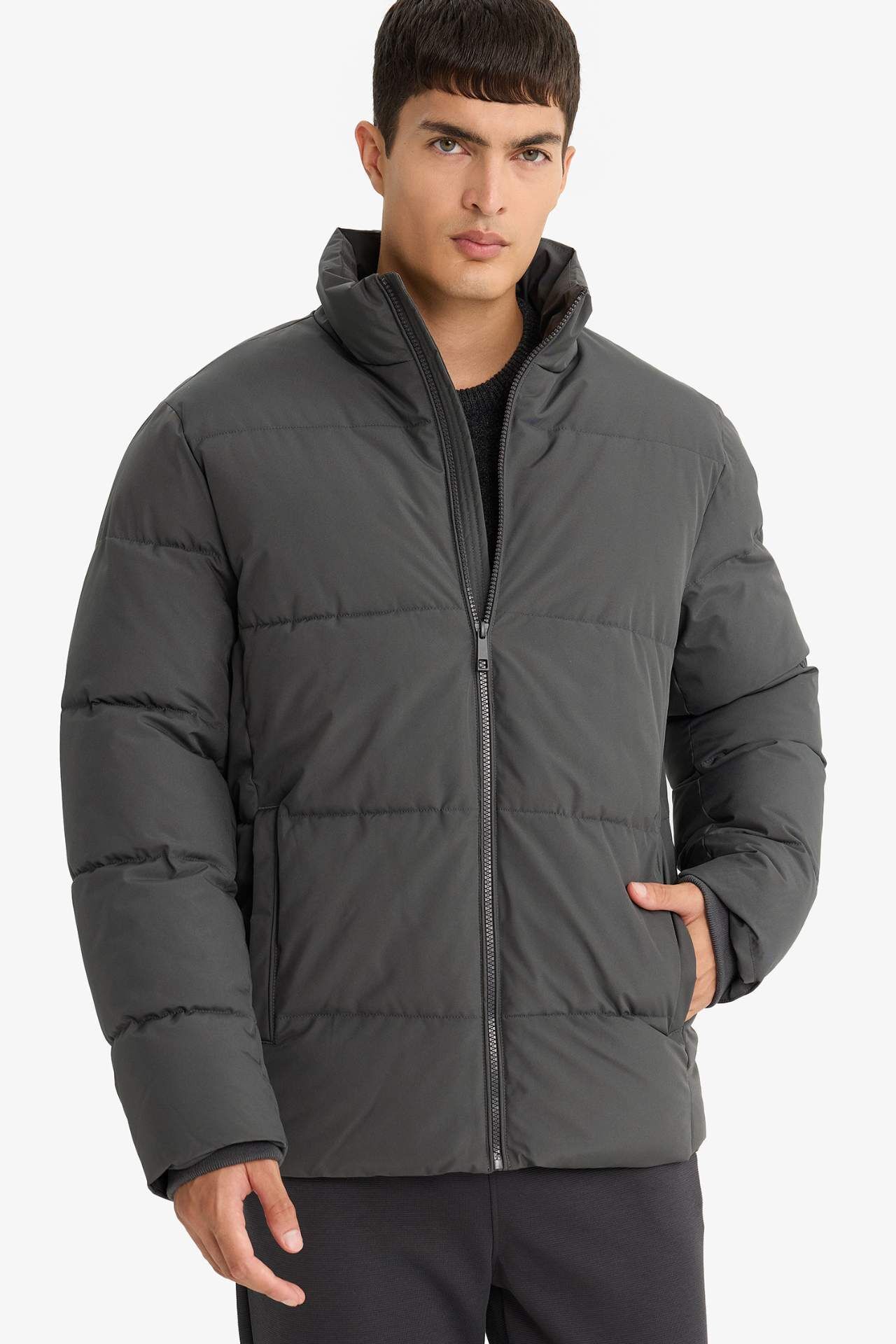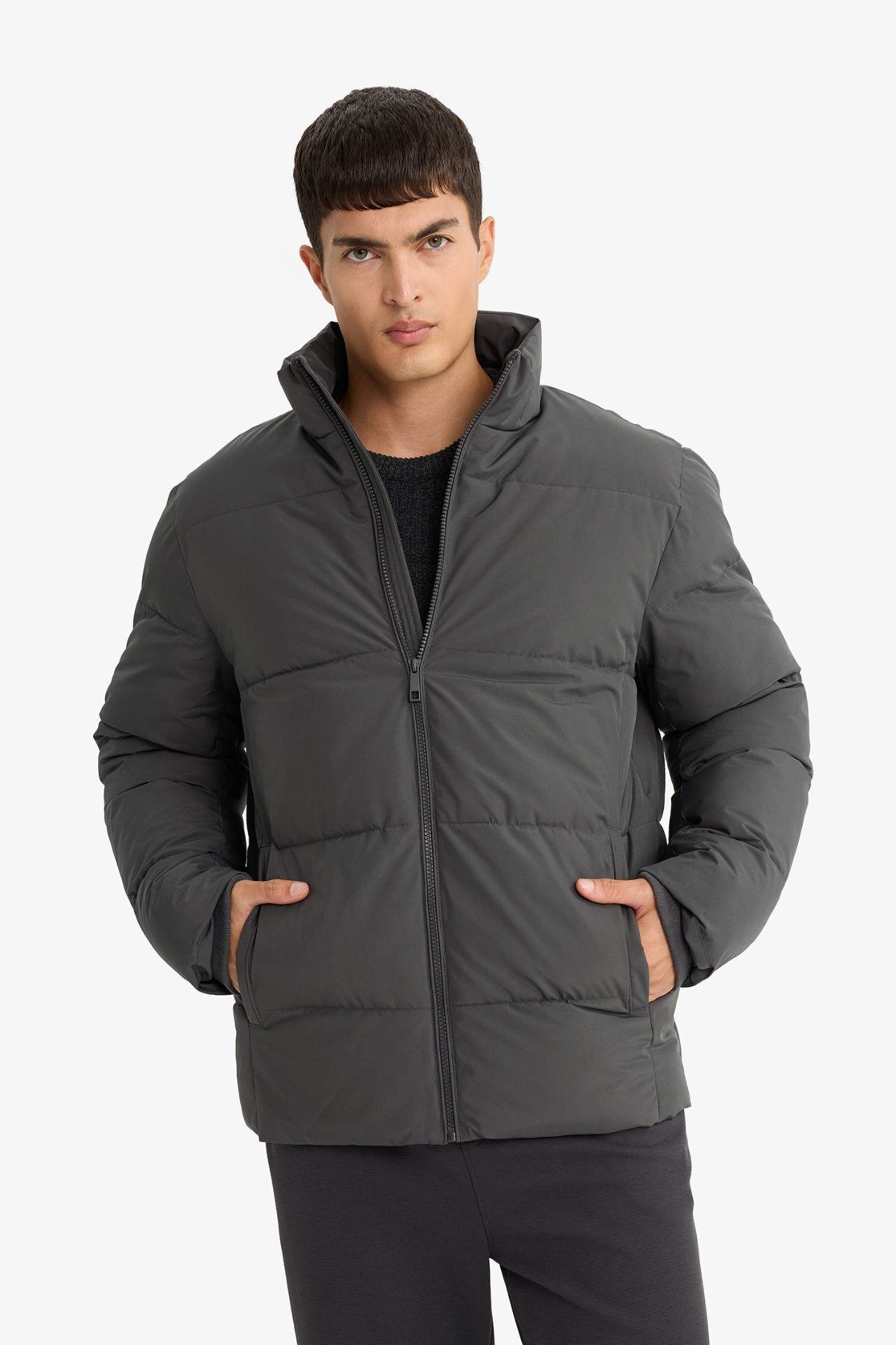 Su İtici Regular Fit Dik Yaka Fermuarlı Cepli Mont