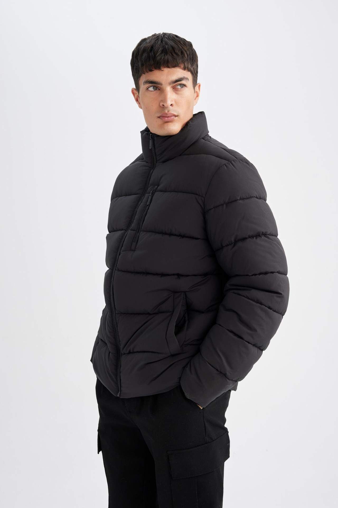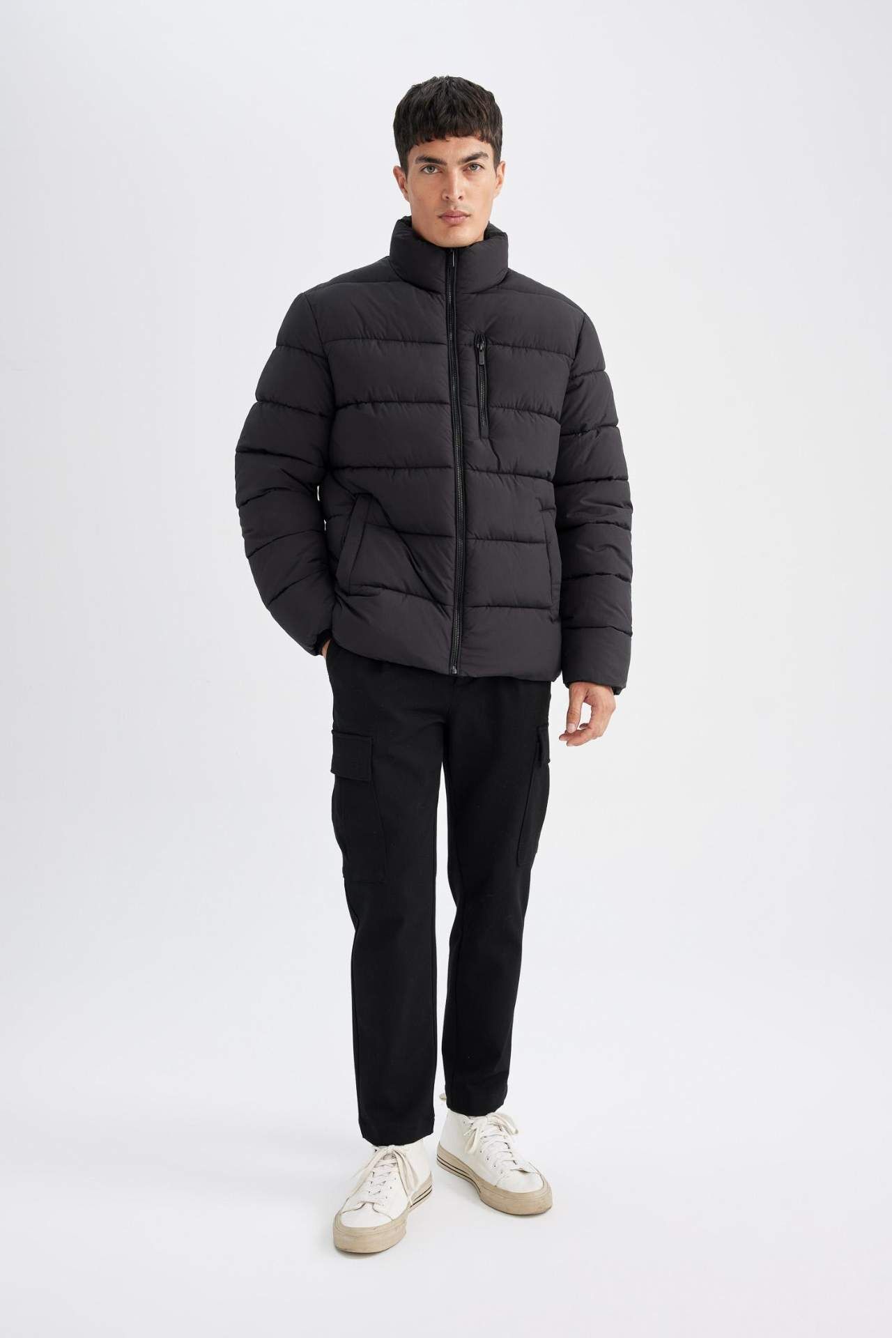 DeFacto Su İtici Rüzgar Geçirmez Slim Fit Dik Yaka Fermuarlı Cepli Şişme Mont