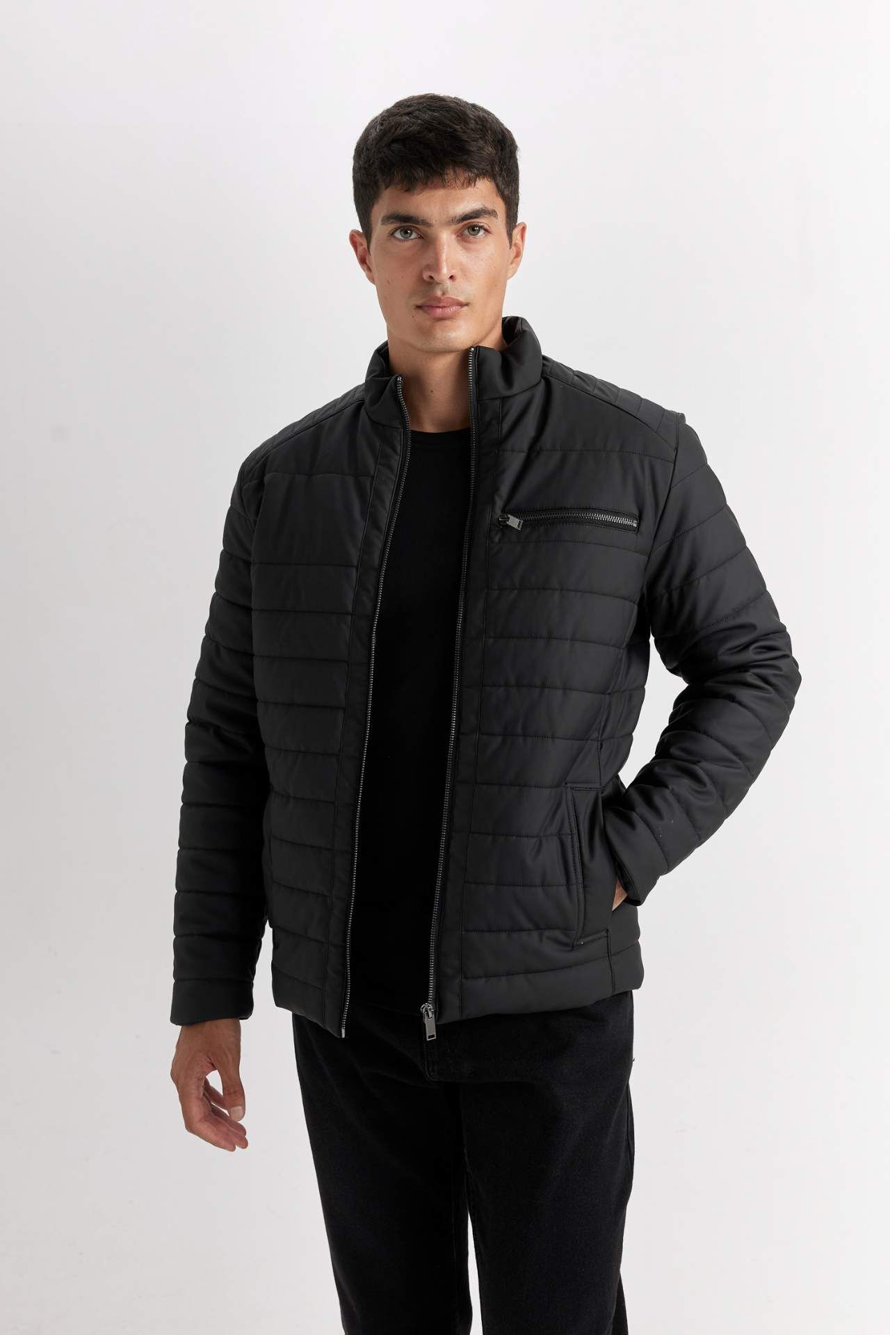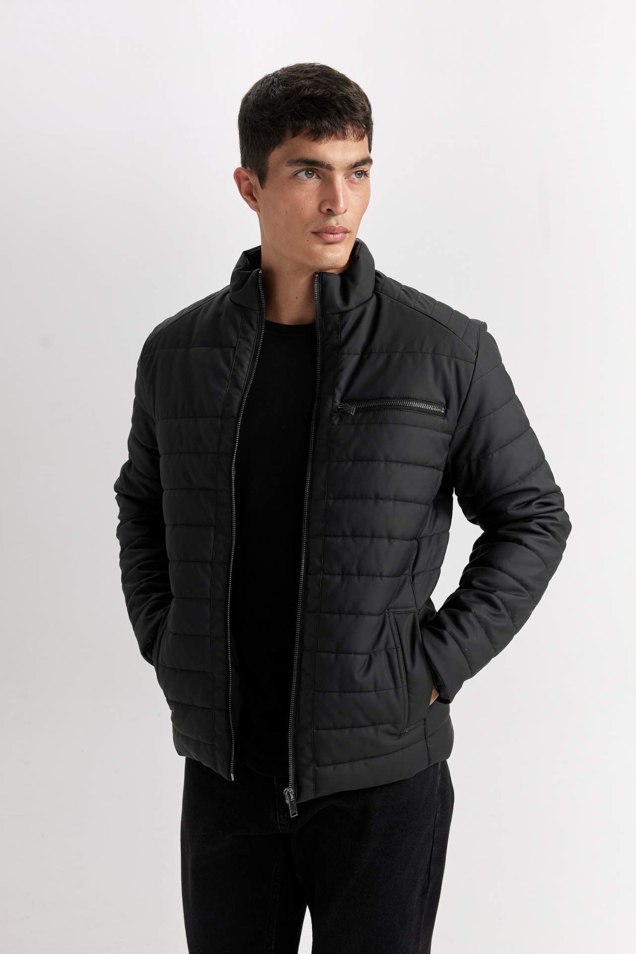 DeFacto Su İtici Slim Fit Dar Kesim Dik Yaka Fermuarlı Suni Deri Mont B3568AX25SPBK27