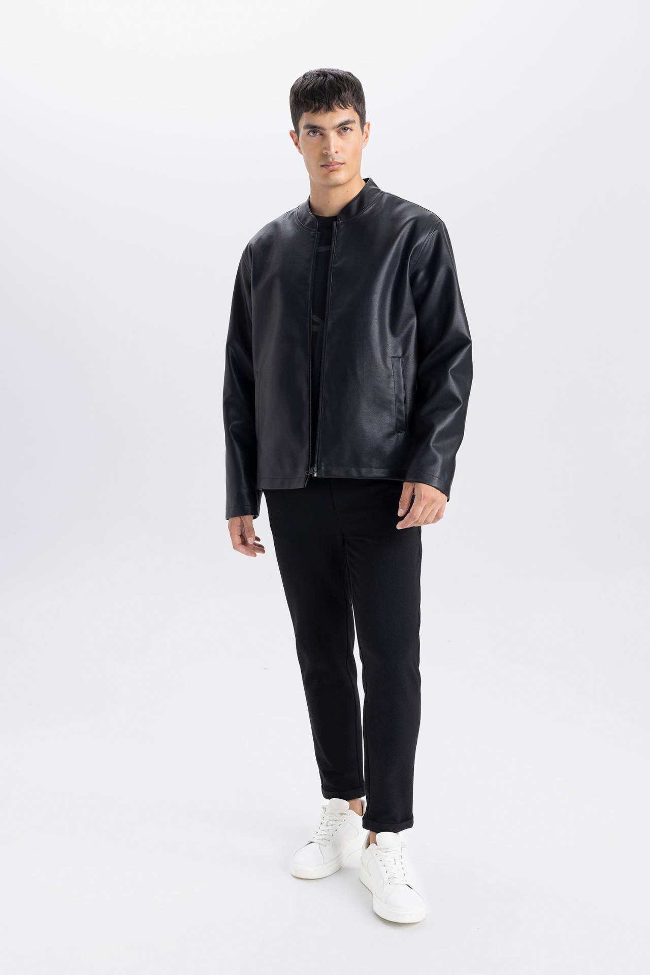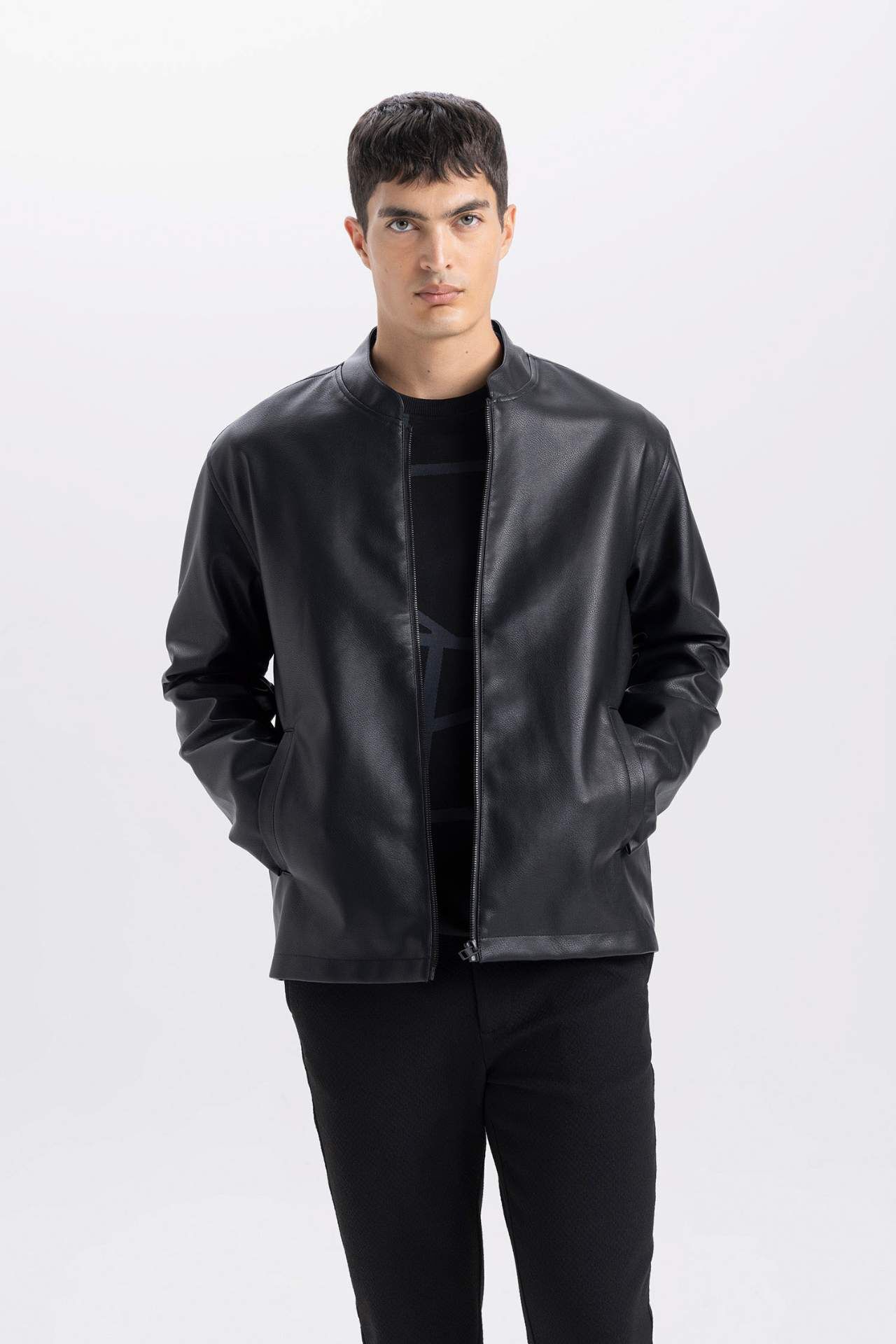 DeFacto Su İtici Slim Fit Dar Kesim Dik Yaka Fermuarlı Suni Deri Mont D8525AX25SPBK27