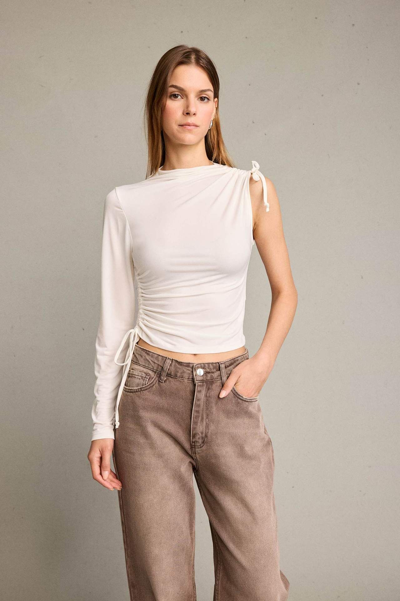 Tek Omuzlu Büzgülü Bluz G5051AX25WNER105