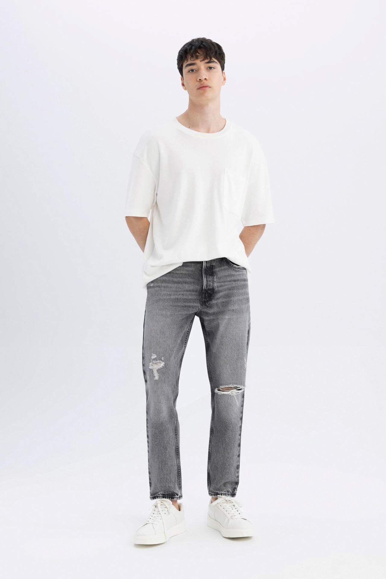 90'ların ruhunu yansıtan slim fit kesimli yırtık detaylı dar paça jean pantolon. Sokak modasına uyum sağlayan şık ve rahat tasarım. Kaliteli kumaşı ve detaylarıyla dikkat çekici bir parça. Gardırobunuzun vazgeçilmezi olmaya aday. Pamuk 100%
