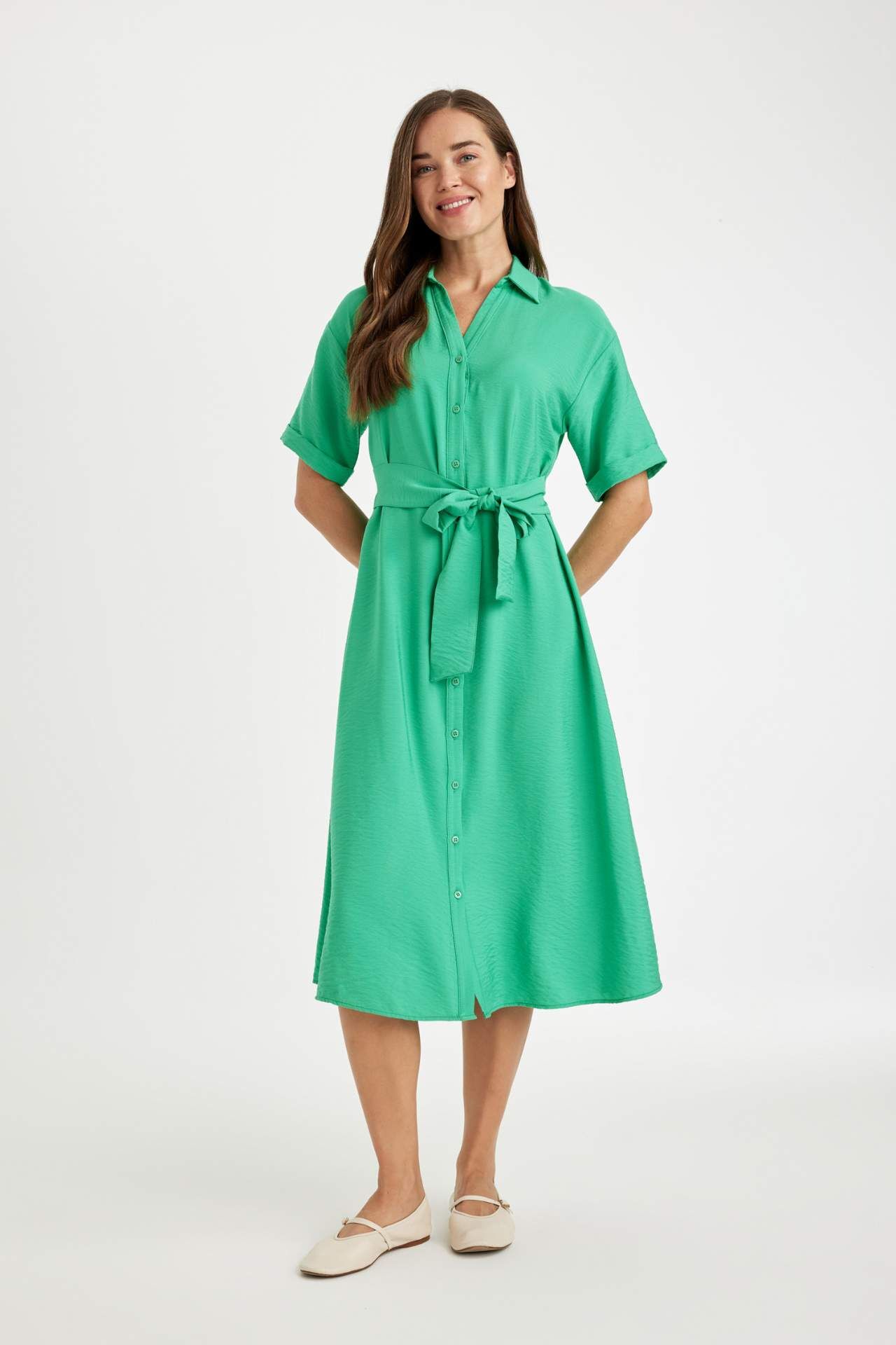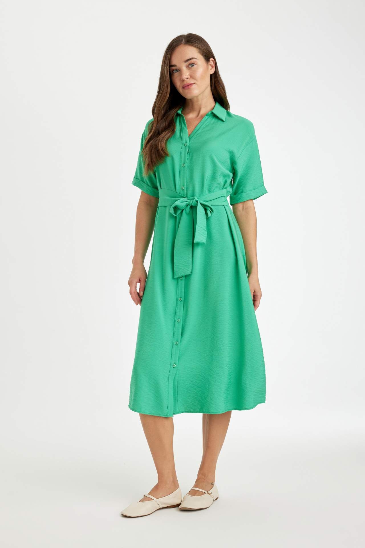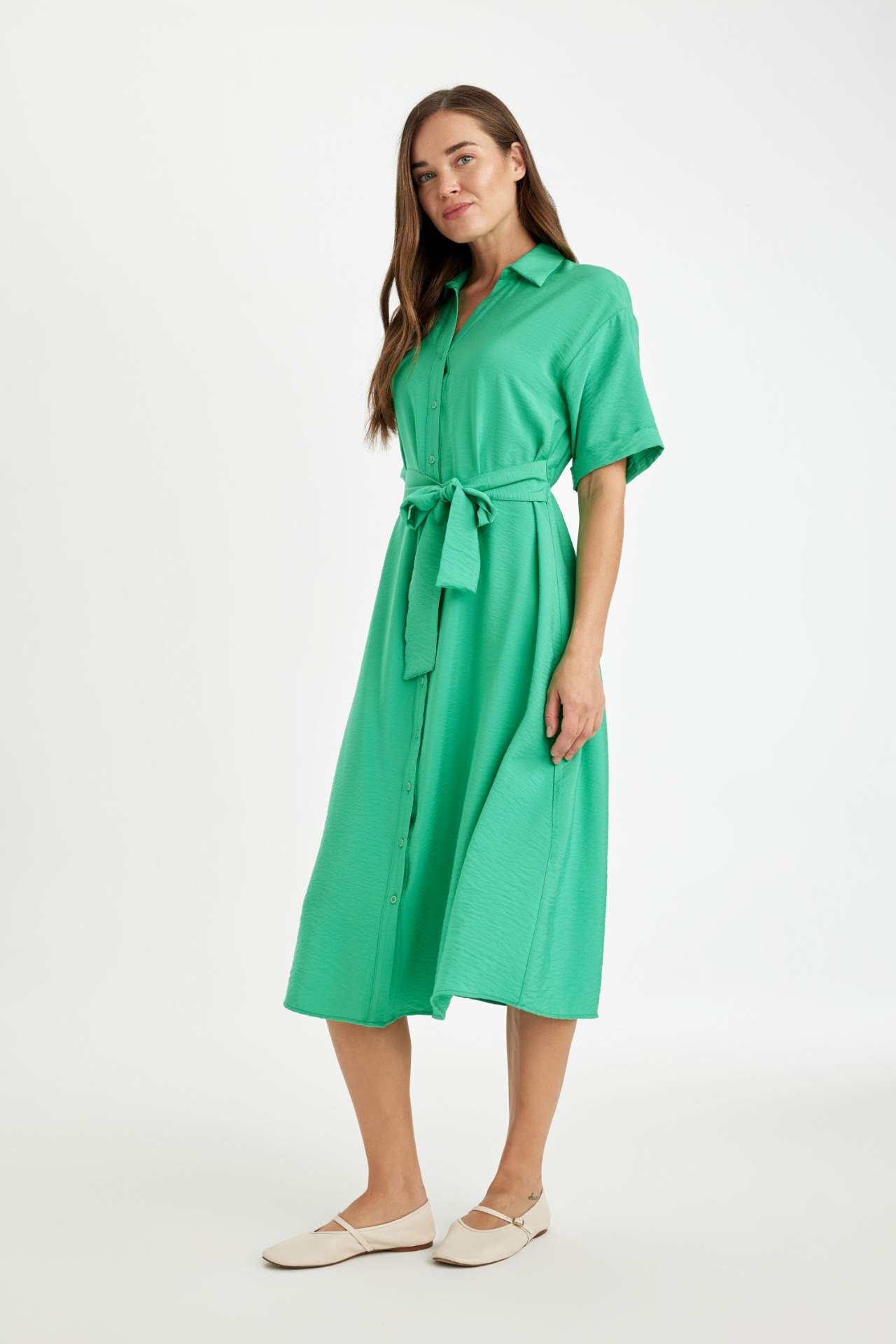 Traditional Regular Fit Gömlek Yaka Kısa Kollu Elbise