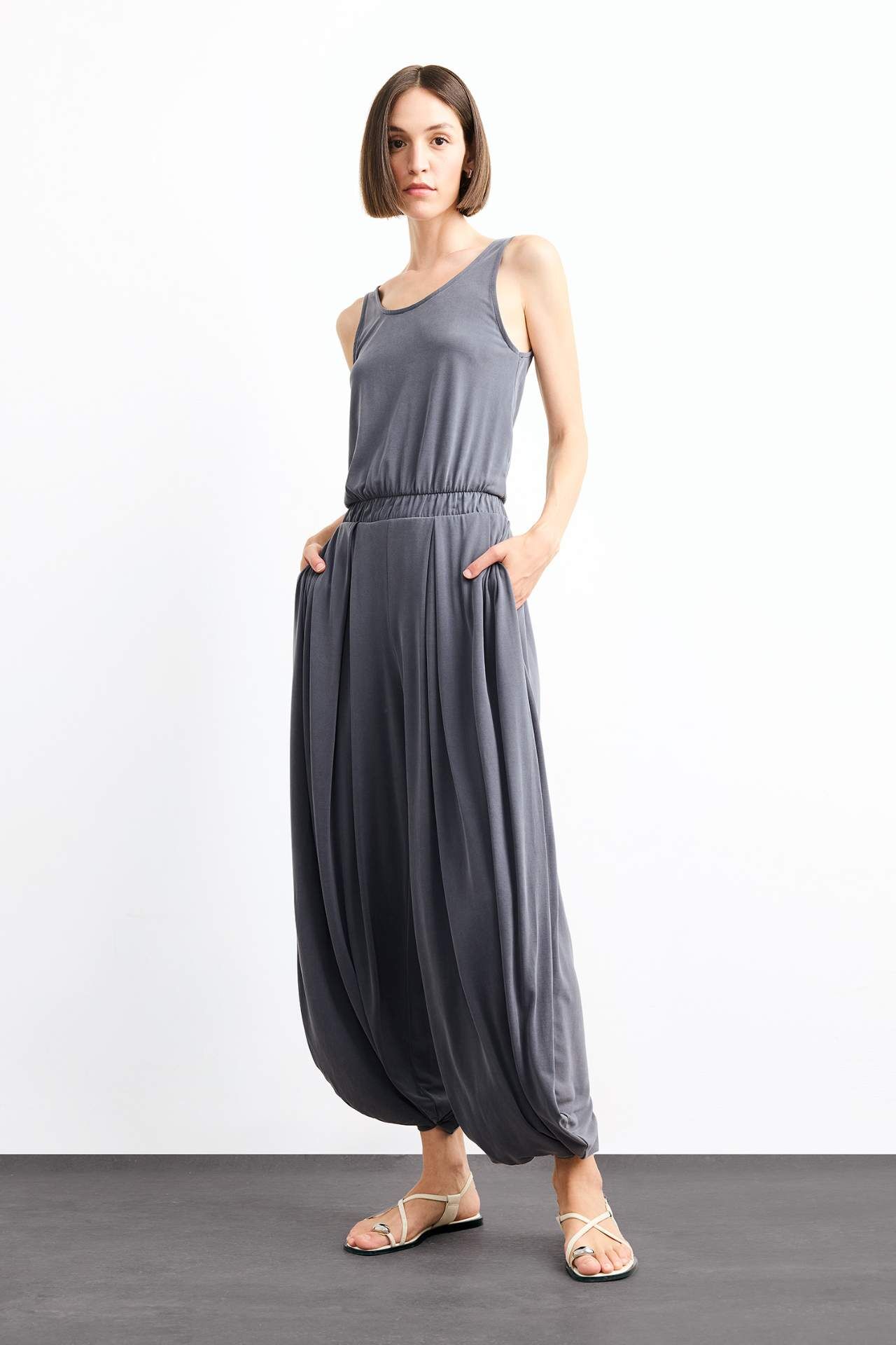 Şıklığı ve rahatlığı bir arada sunan U yaka kolsuz modal tulum, hafif ve nefes alabilen kumaşıyla sıcak günler için ideal bir tercih. Modern kesimi sayesinde hem günlük hem özel anlarda stilinizi tamamlar. Modal 80%,Poliester 20%,Modal 80%,Poliester 20%,Modal 80%,Poliester 20%,Modal 80%,Poliester 20%,Modal 80%,Poliester 20%,Modal 80%,Poliester 20%,Modal 80%,Poliester 20% Manken Bedeni: Göğüs: 83 Boy: 1,81 Basen: 90 Bel: 58