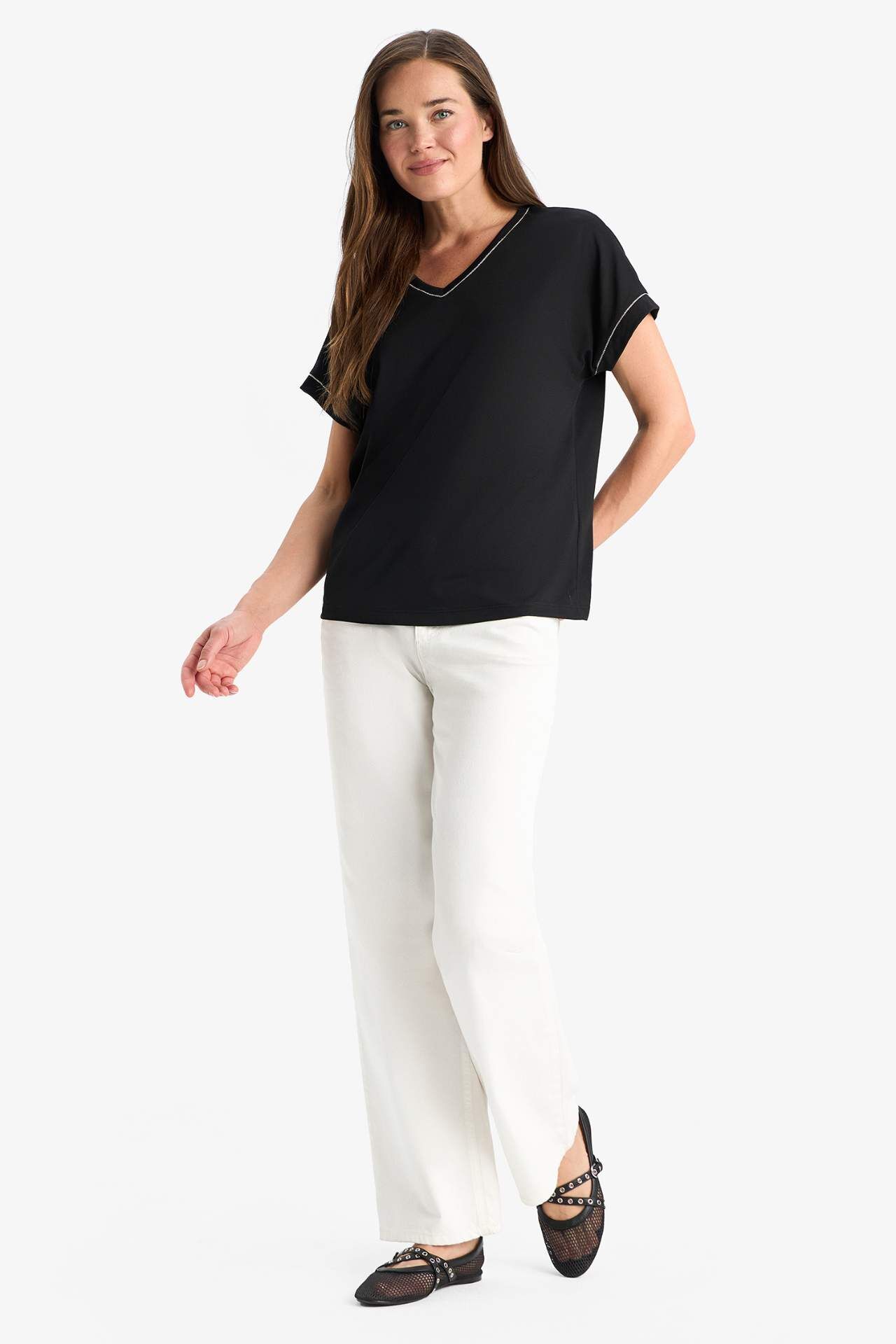 DeFacto V Yaka Basic Düz Kısa Kollu Tişört