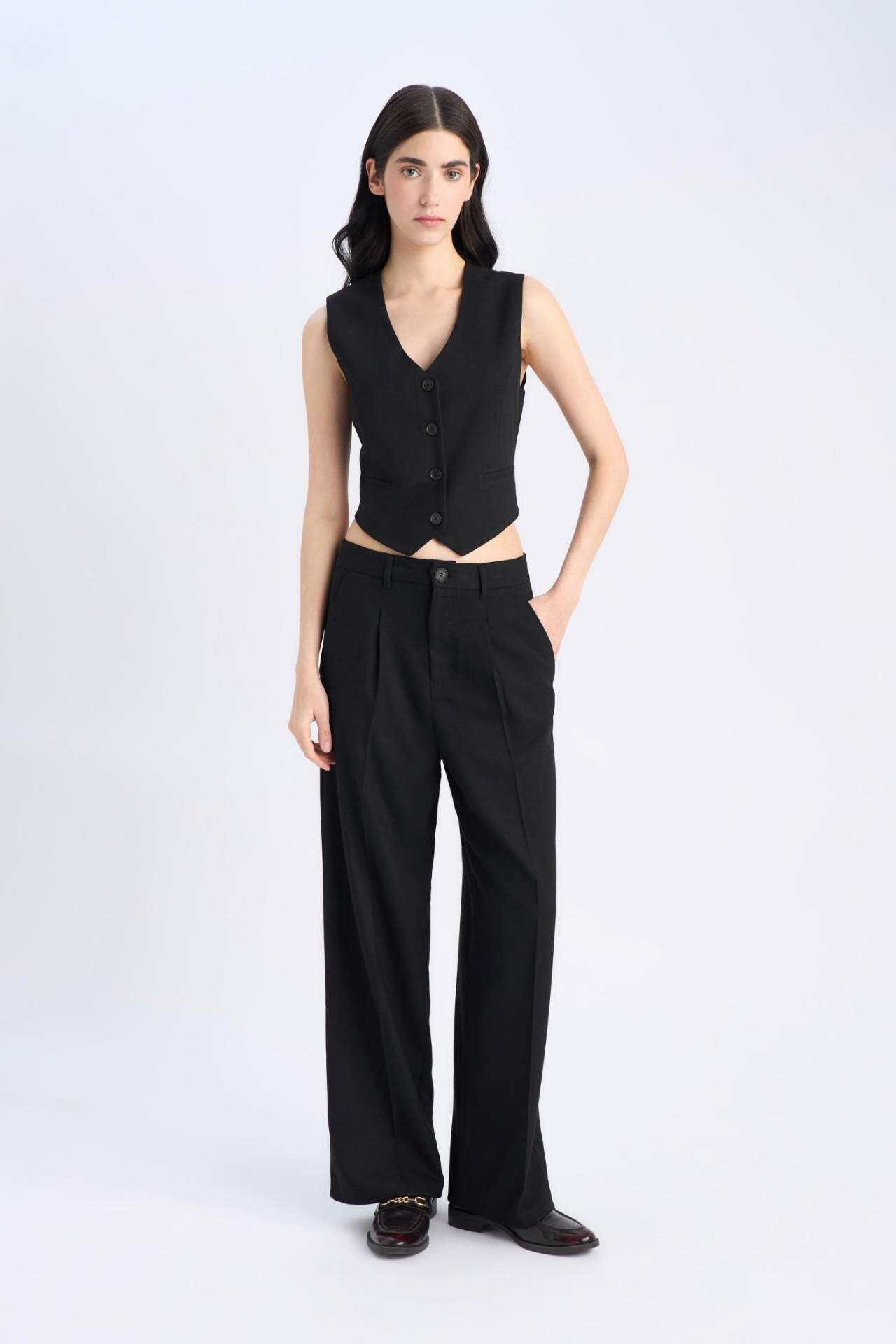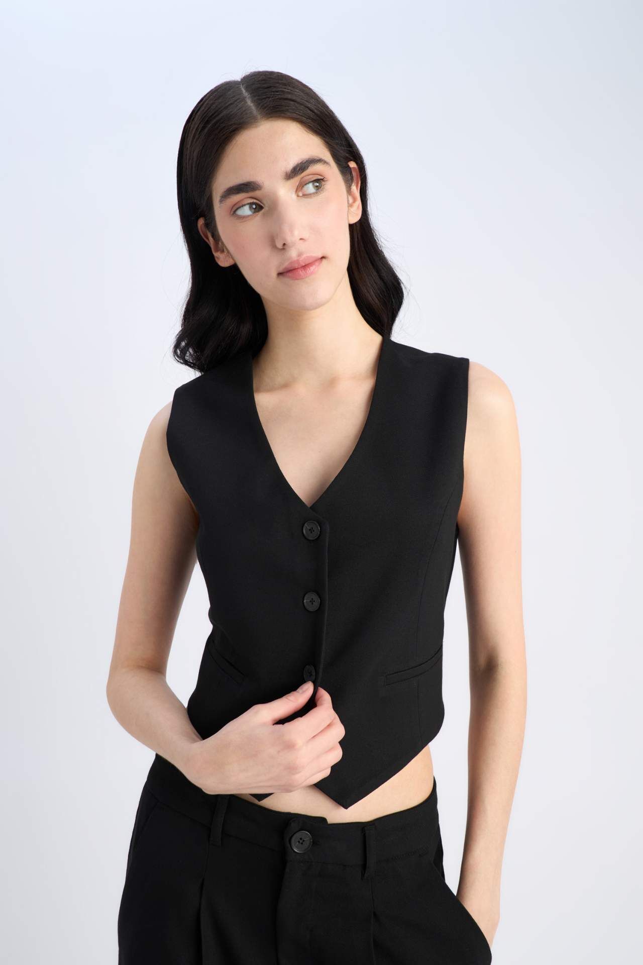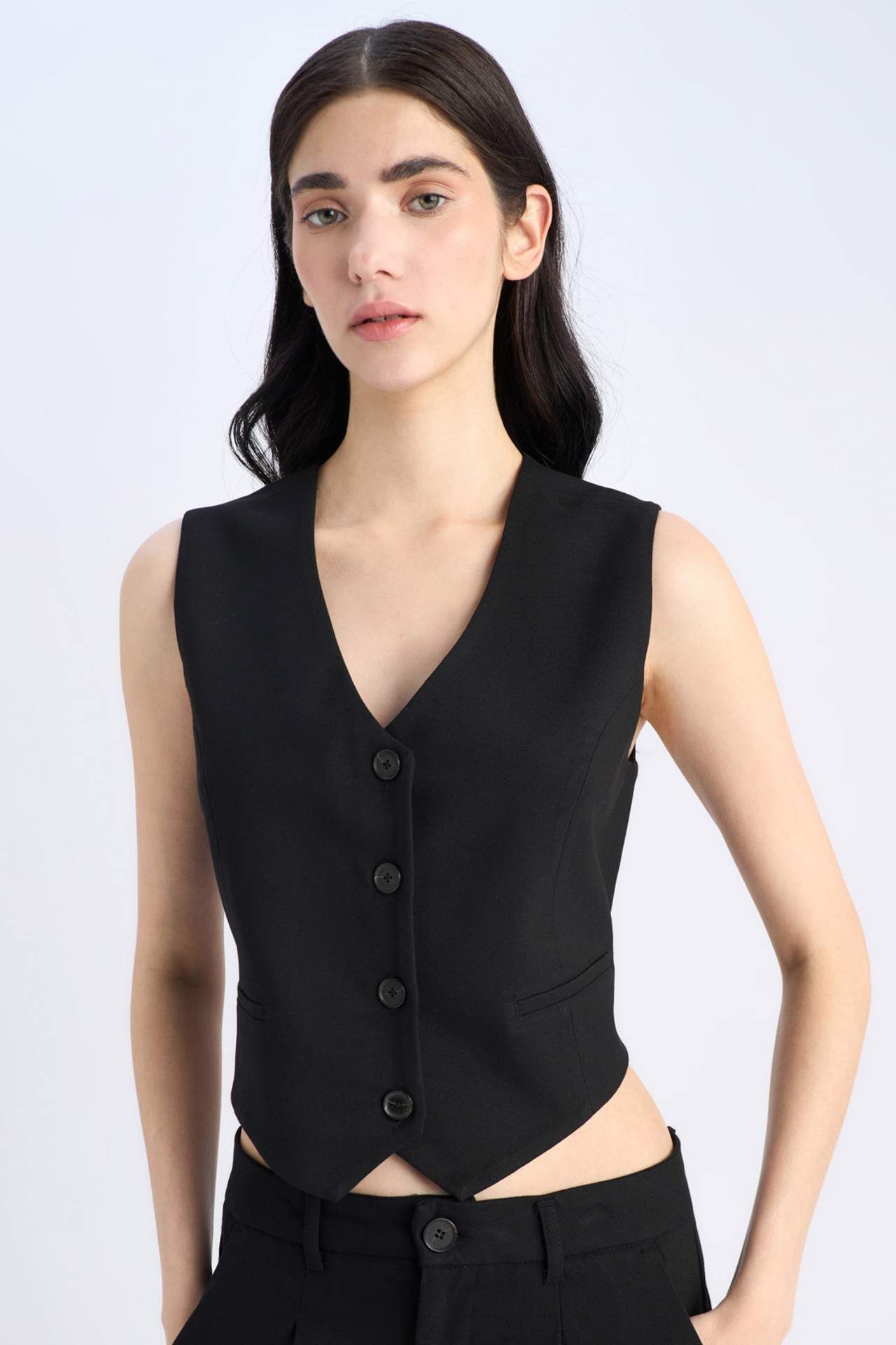 V Yaka Düğmeli Klasik Blazer Yelek