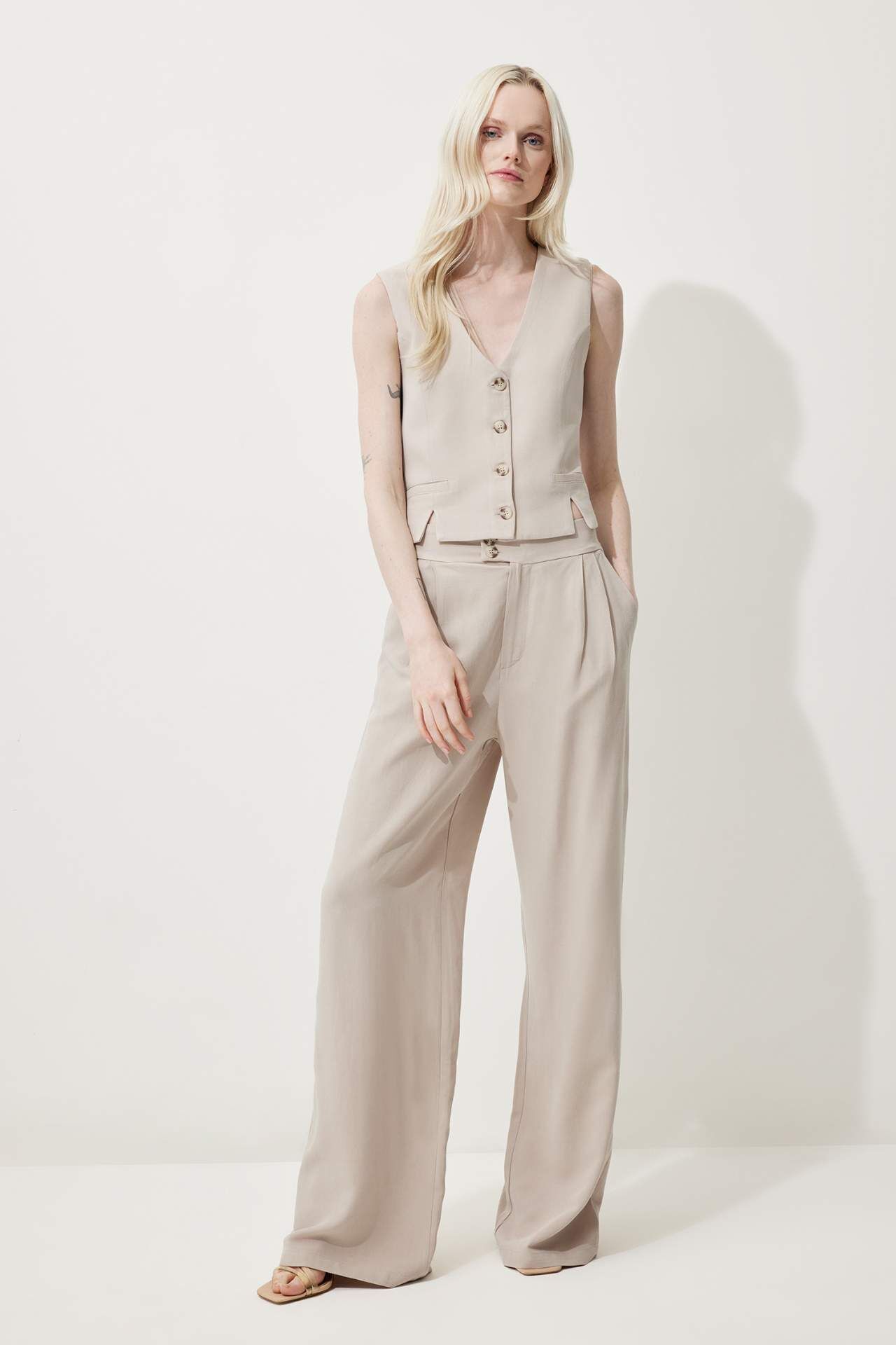 Regular fit, keten karışımlı bej yelek, ilkbahar/yaz için ideal. Fark yaratan fleto cepleri ve crop üst bedeni ile tarzınızı tamamlayın. V yaka detayıyla şıklığınızı ön plana çıkarın. Kesinlikle göz alıcı bir seçim! Viskoz 83%,Keten 17%,Poliester 100%,Viskoz 83%,Keten 17%,Poliester 100%,Viskoz 83%,Keten 17%,Poliester 100%,Viskoz 83%,Keten 17%,Poliester 100% Manken Bedeni: Göğüs: 78 Boy: 1,78 Basen: 89 Bel: 61