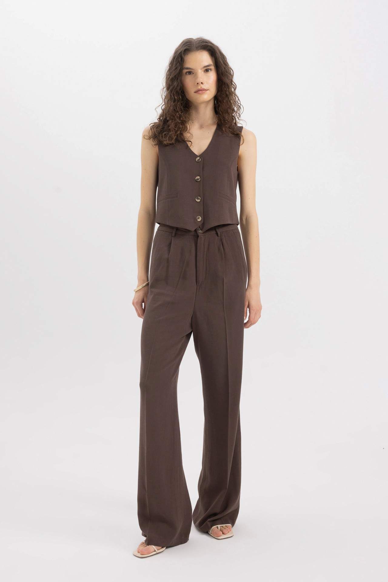 DeFactoFit V Yaka Keten Karışımlı Blazer Yelek