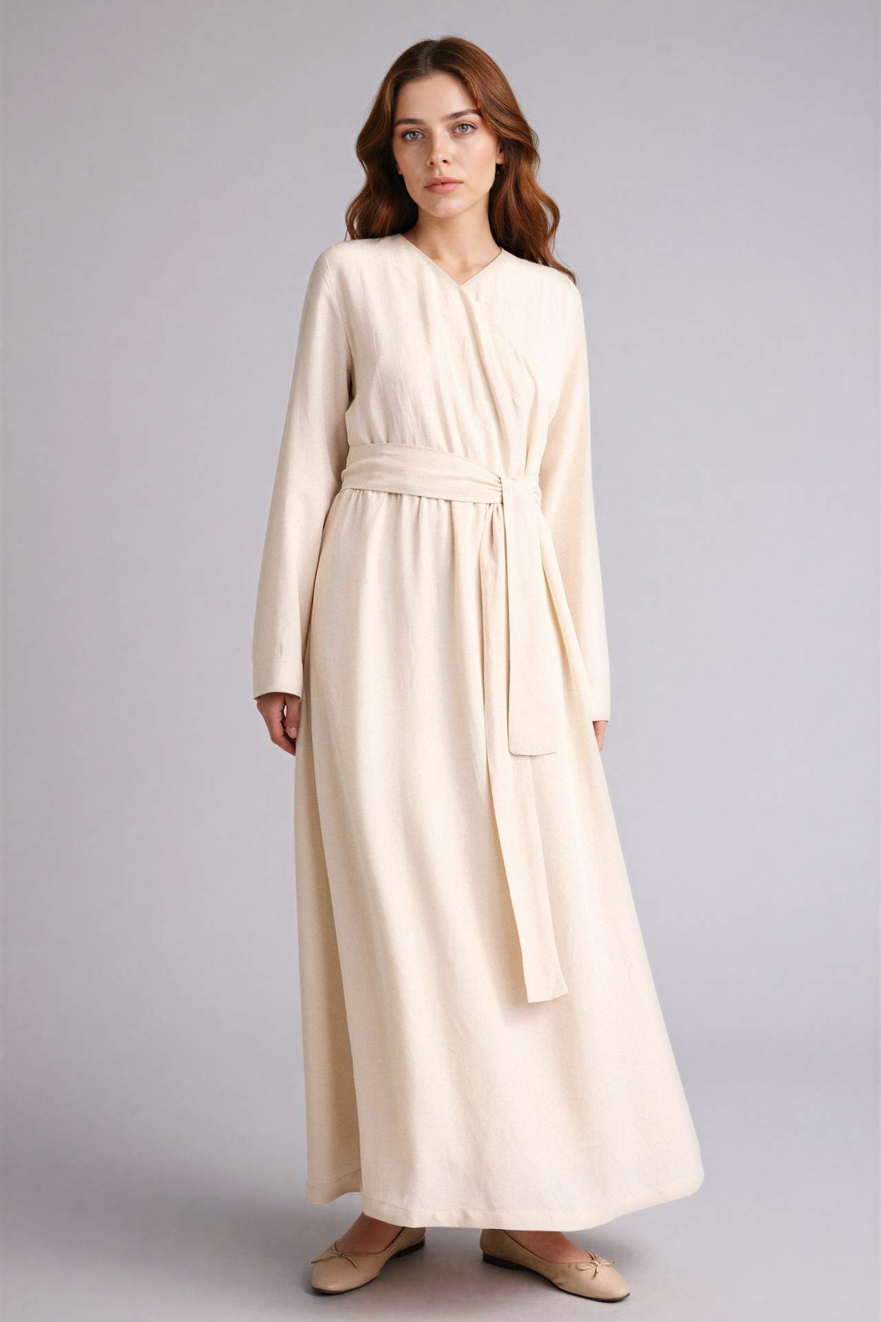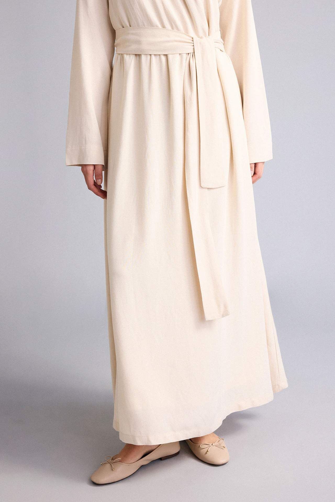 DeFacto V Yaka Keten Karışımlı Uzun Kollu Elbise