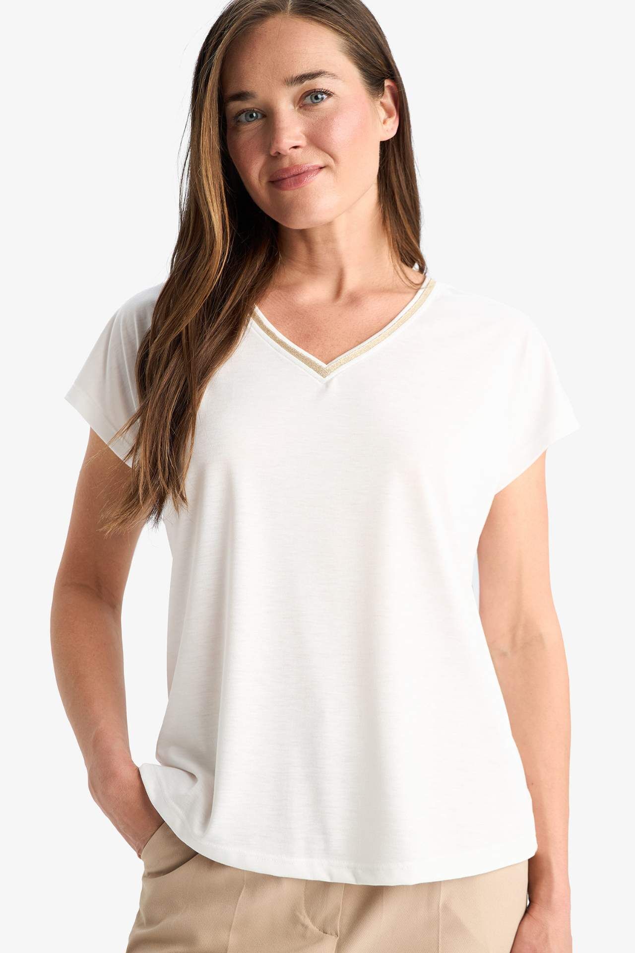 DeFacto V Yaka Kısa Kollu Tişört F4832AX25SMER105