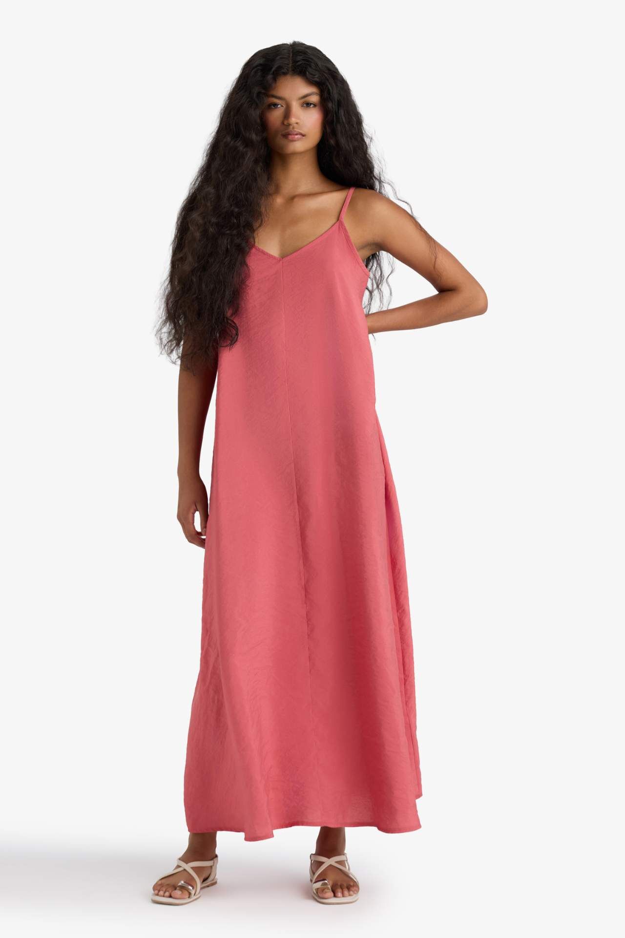 V Yaka Modal İnce Askılı Maxi Elbise