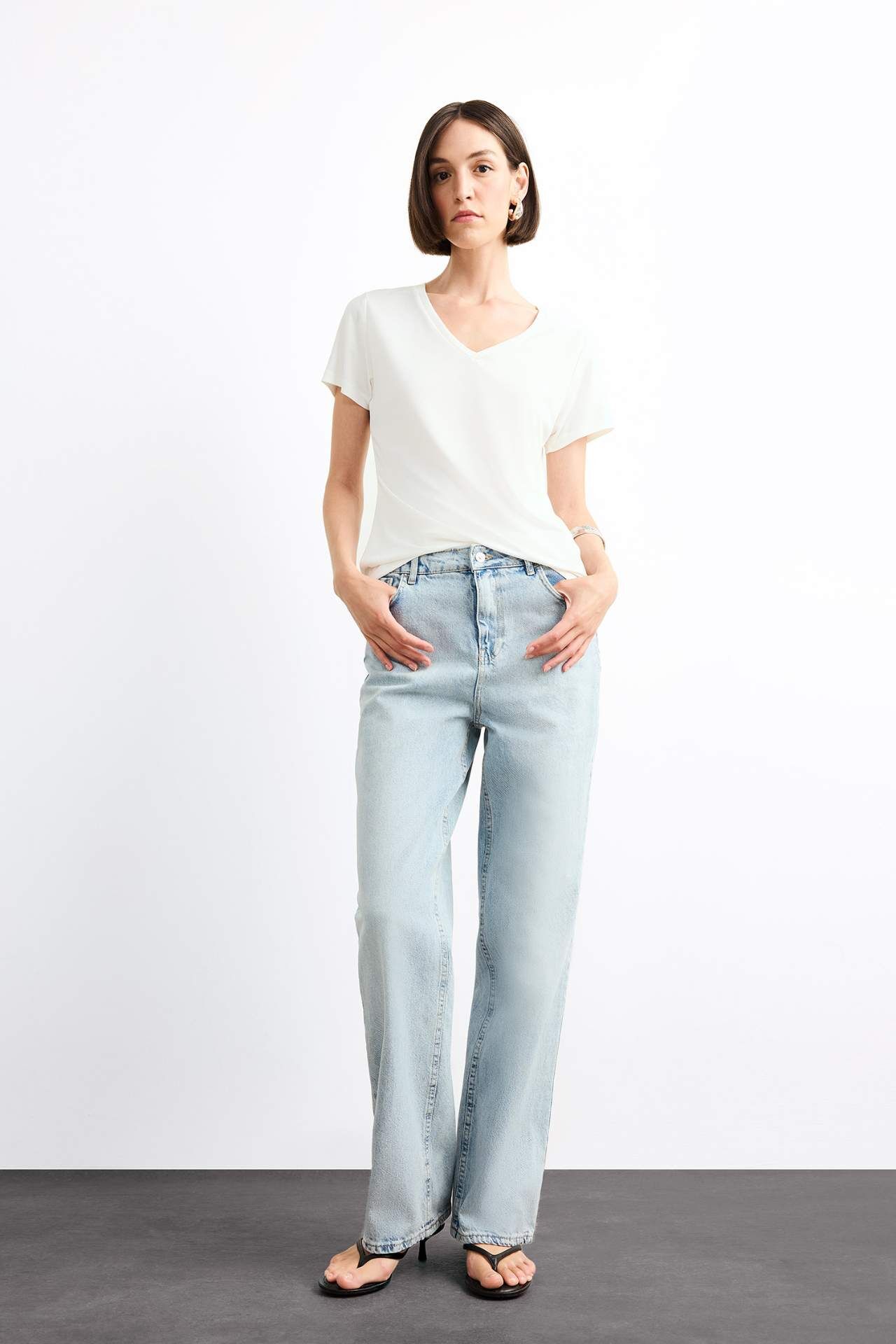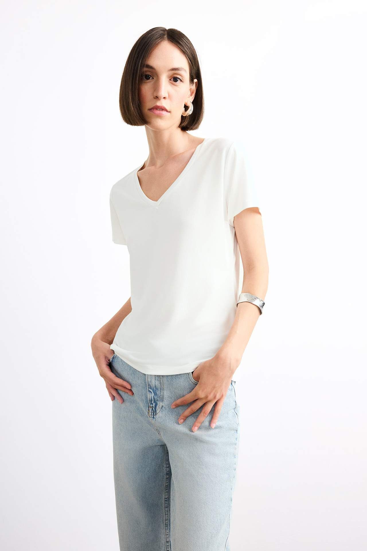V Yaka Modal Kısa Kollu Tişört G0402AX25SMWT34