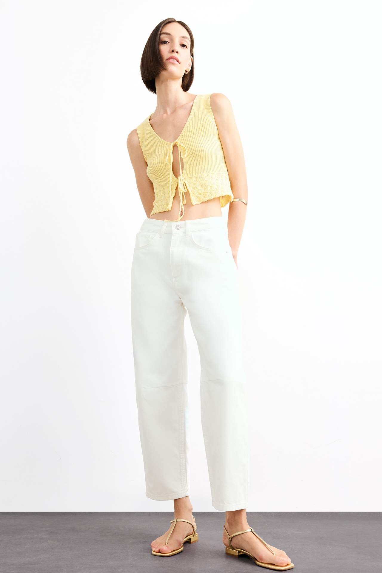 V yaka kesimi ve önden bağlamalı tasarımıyla feminen bir duruş sergileyen bu triko bluz, zarif ve modern bir stil sunar. Yumuşak dokusuyla hem şıklığı hem de konforu bir arada yaşatır. Pamuk 57%,Poliester 43%,Pamuk 57%,Poliester 43%,Pamuk 57%,Poliester 43%,Pamuk 57%,Poliester 43%,Pamuk 57%,Poliester 43%,Pamuk 57%,Poliester 43%,Pamuk 57%,Poliester 43% Manken Bedeni: Göğüs: 83 Boy: 1,81 Basen: 90 Bel: 58