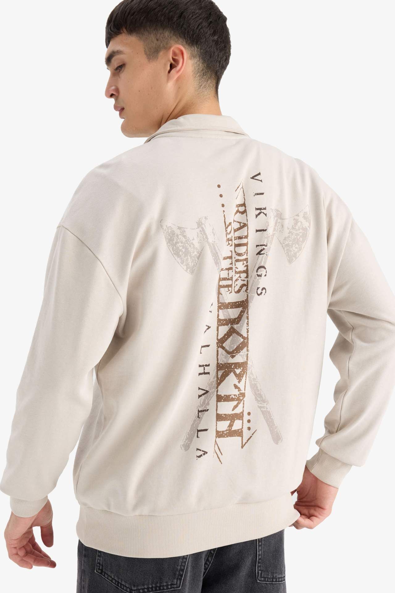 DeFacto Vikings Valhalla Boxy Fit Dik Yaka Fermuarlı Sırt Baskılı Sweatshirt