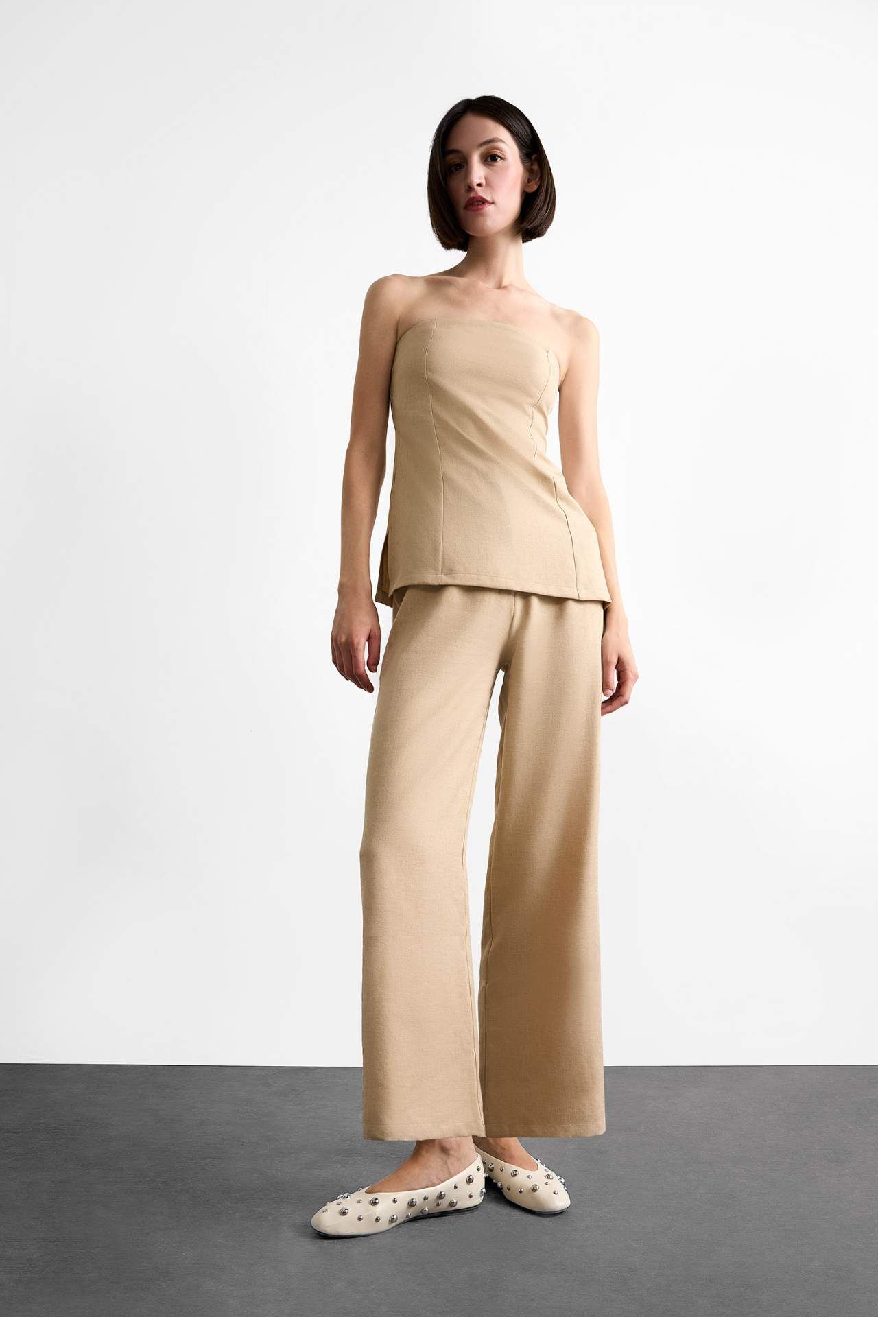 Vücudu saran straplez basic düz bluz, sade ve şık tasarımıyla feminen bir siluet sunar. Esnek kumaşı sayesinde rahatlıkla vücuda oturur, farklı kombinlerle kolayca uyum sağlar. Poliester 100%,Poliester 100%,Poliester 100%,Poliester 100%,Poliester 100%,Poliester 100% Manken Bedeni: Göğüs: 83 Boy: 1,81 Basen: 90 Bel: 58