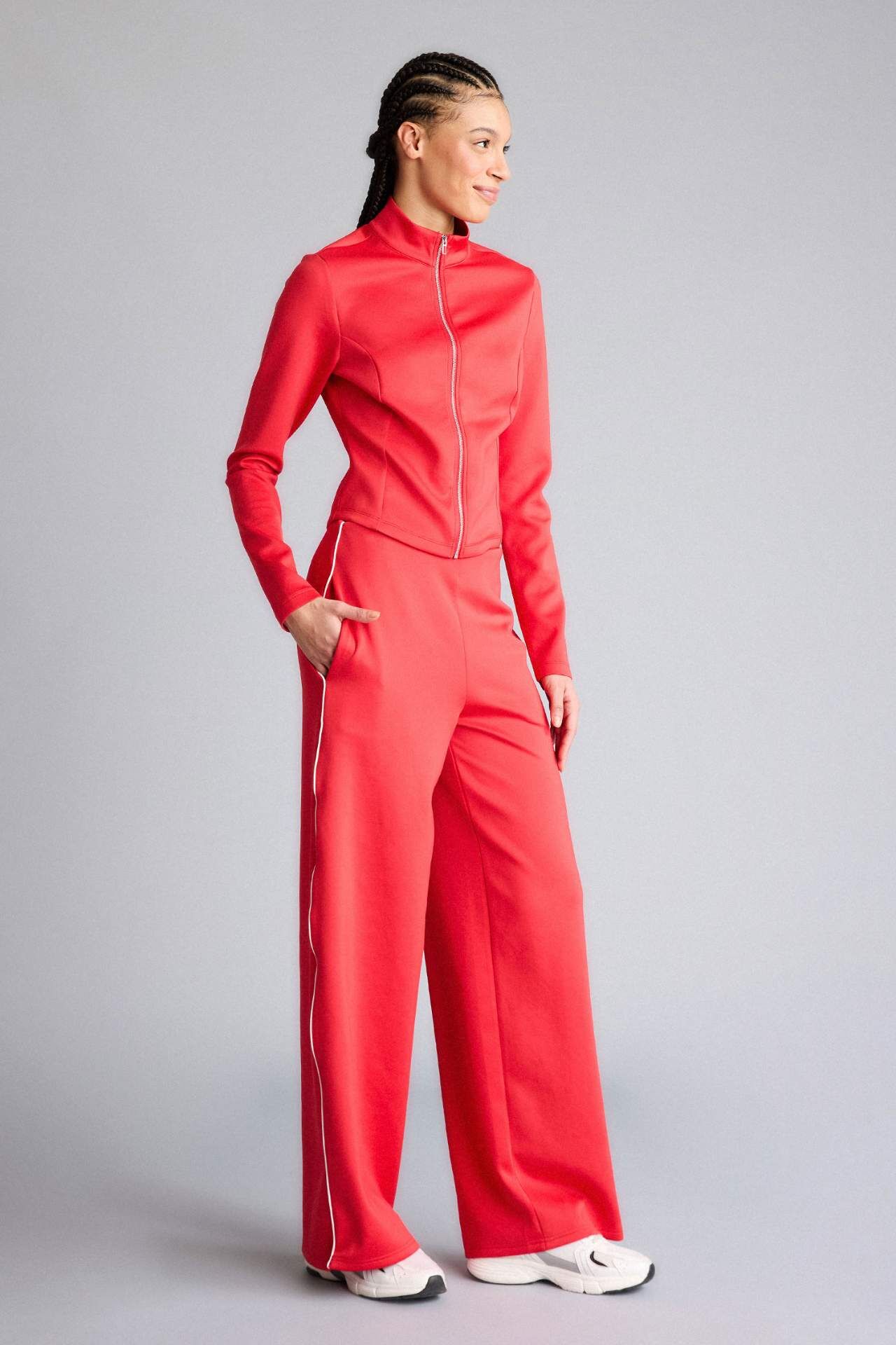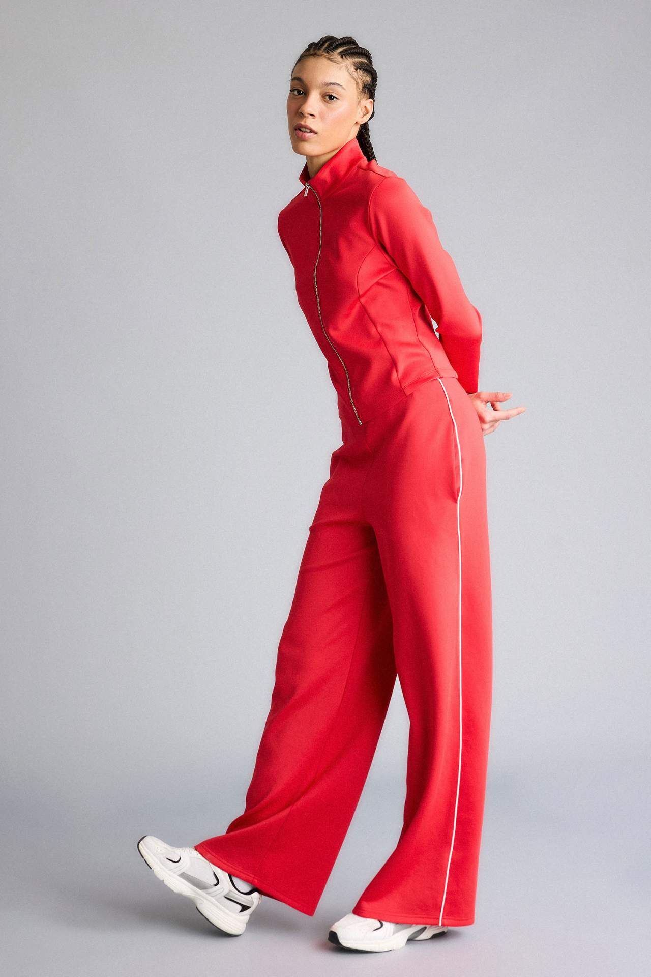 DeFacto Wide Leg Cepli Geniş Paça Standart Boy Skuba Dalgıç Kumaş Sporcu Pantolon