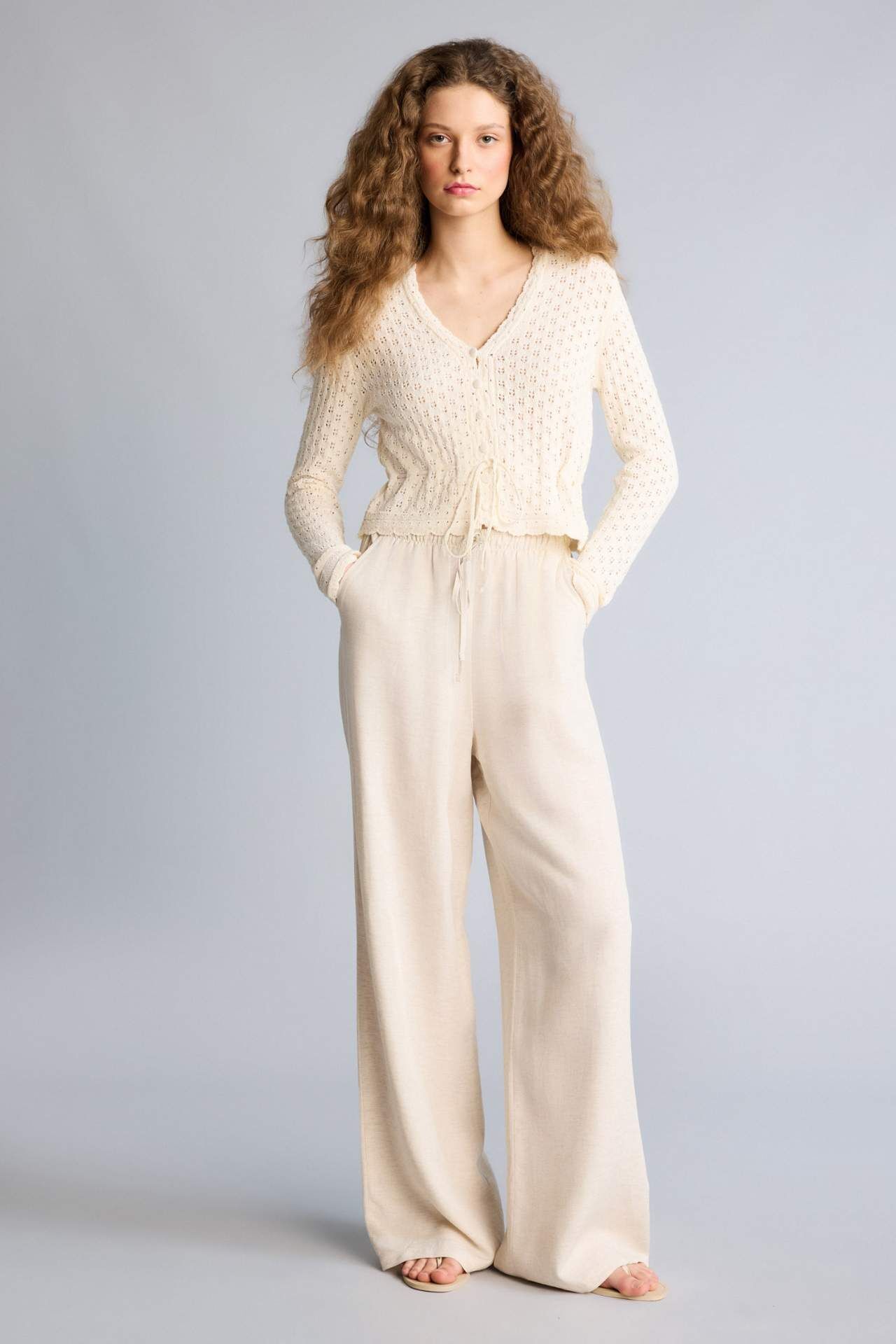 DeFacto Wıde Leg Cepli Yüksek Bel Standart Boy Keten Karışımlı Pantolon