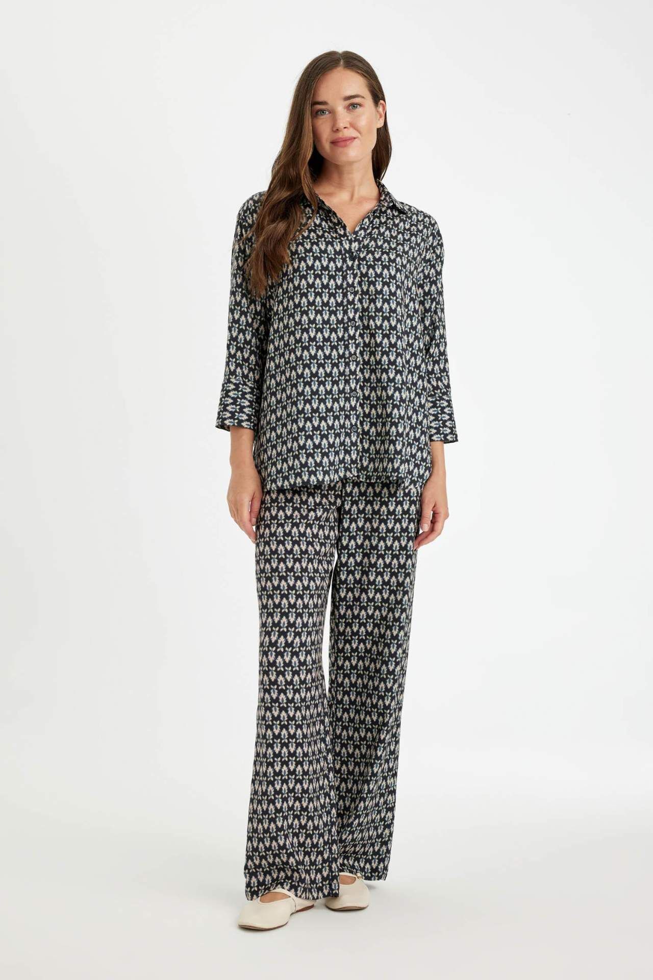 DeFacto Wide Leg Desenli Yüksel Geniş Paça Rahat Pantolon