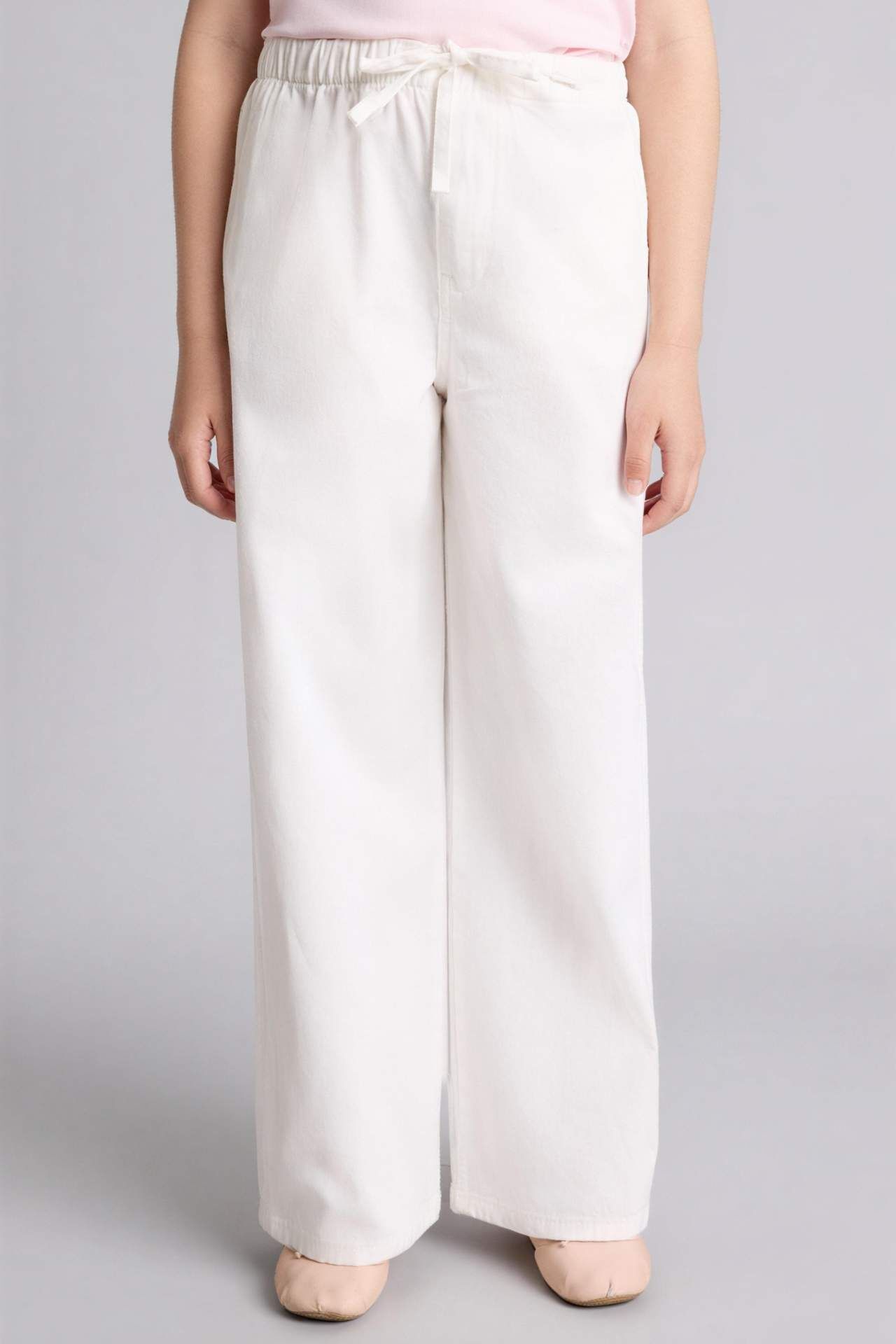 Wıde Leg Düz Paça Gabardin Pantolon Kız Çocuk