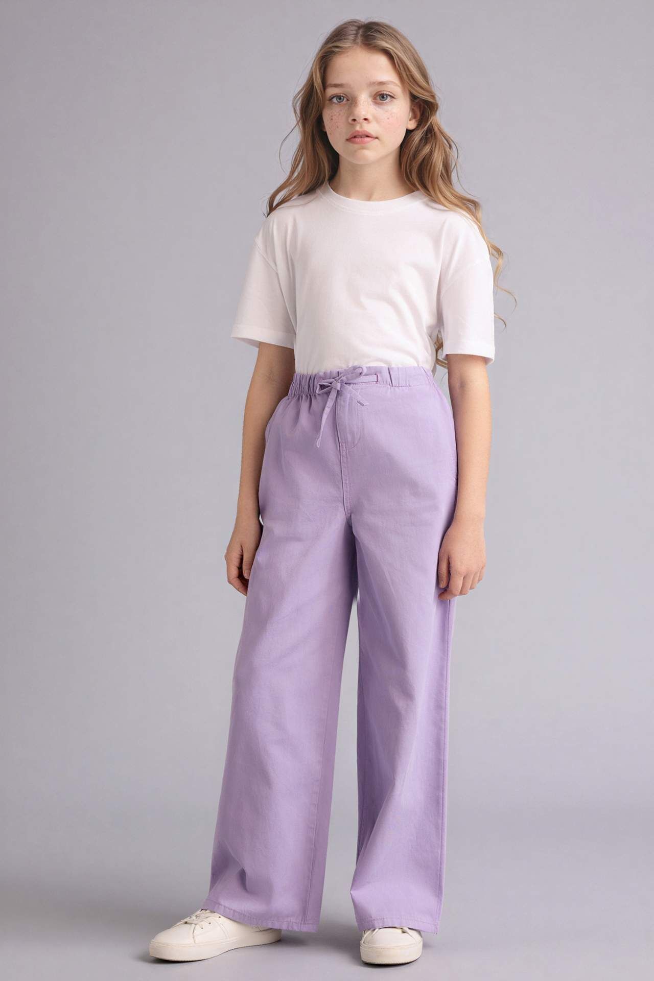 Wıde Leg Düz Paça Gabardin Pantolon Kız Çocuk