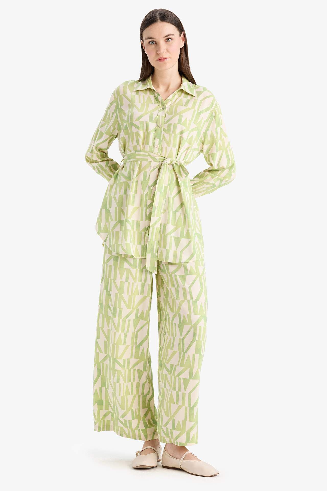 DeFacto Wide Leg Geniş Bol Paça Desenli Viskon Pantolon D9757AX25SMGN1146