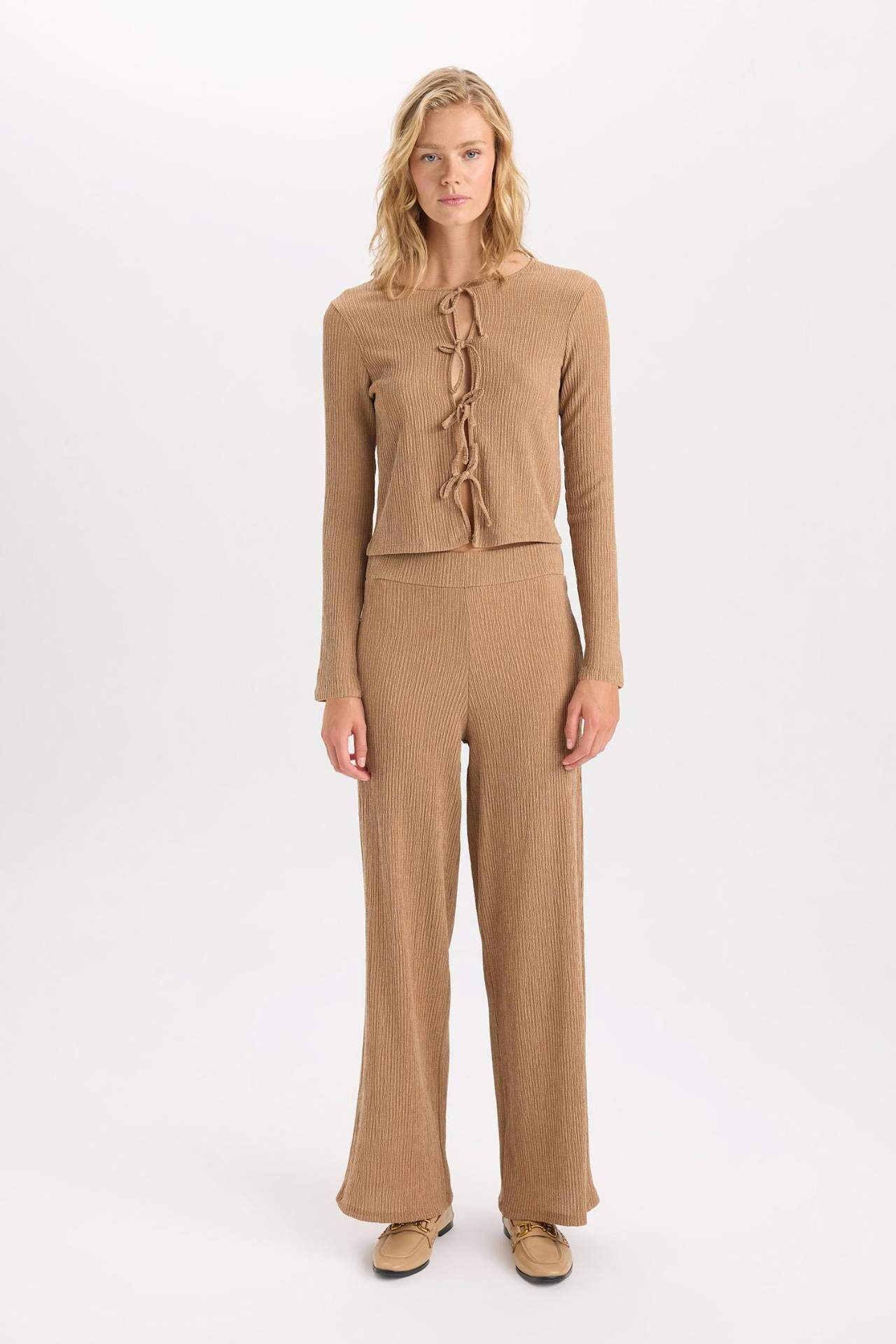DeFacto Wide Leg Geniş Bol Paça Esnek Belli Basic Düz Bürümcük Pantolon D6300AX24AUBG138