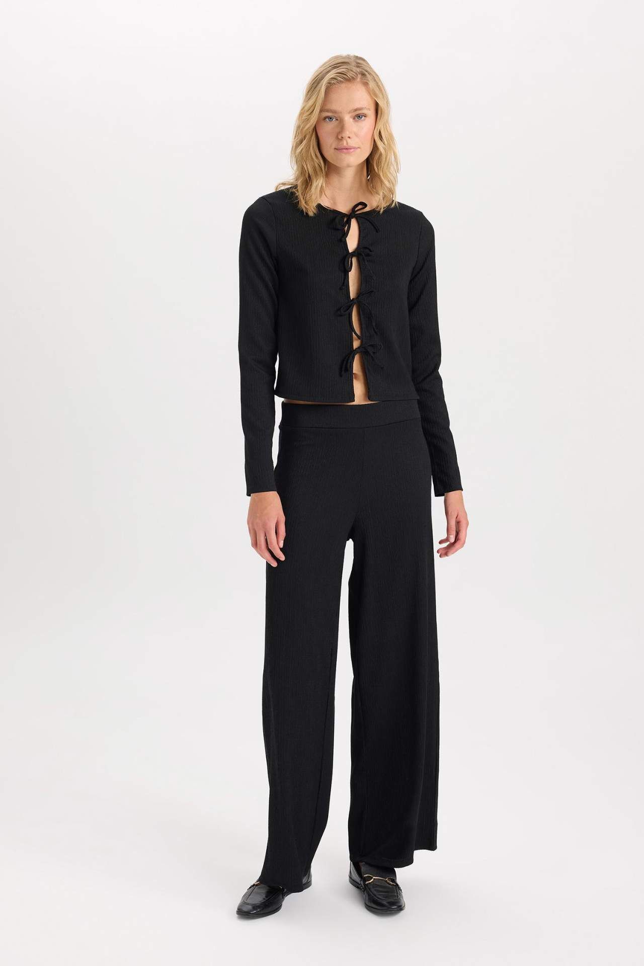 DeFacto Wide Leg Geniş Bol Paça Esnek Belli Basic Düz Bürümcük Pantolon D6300AX24AUBK81
