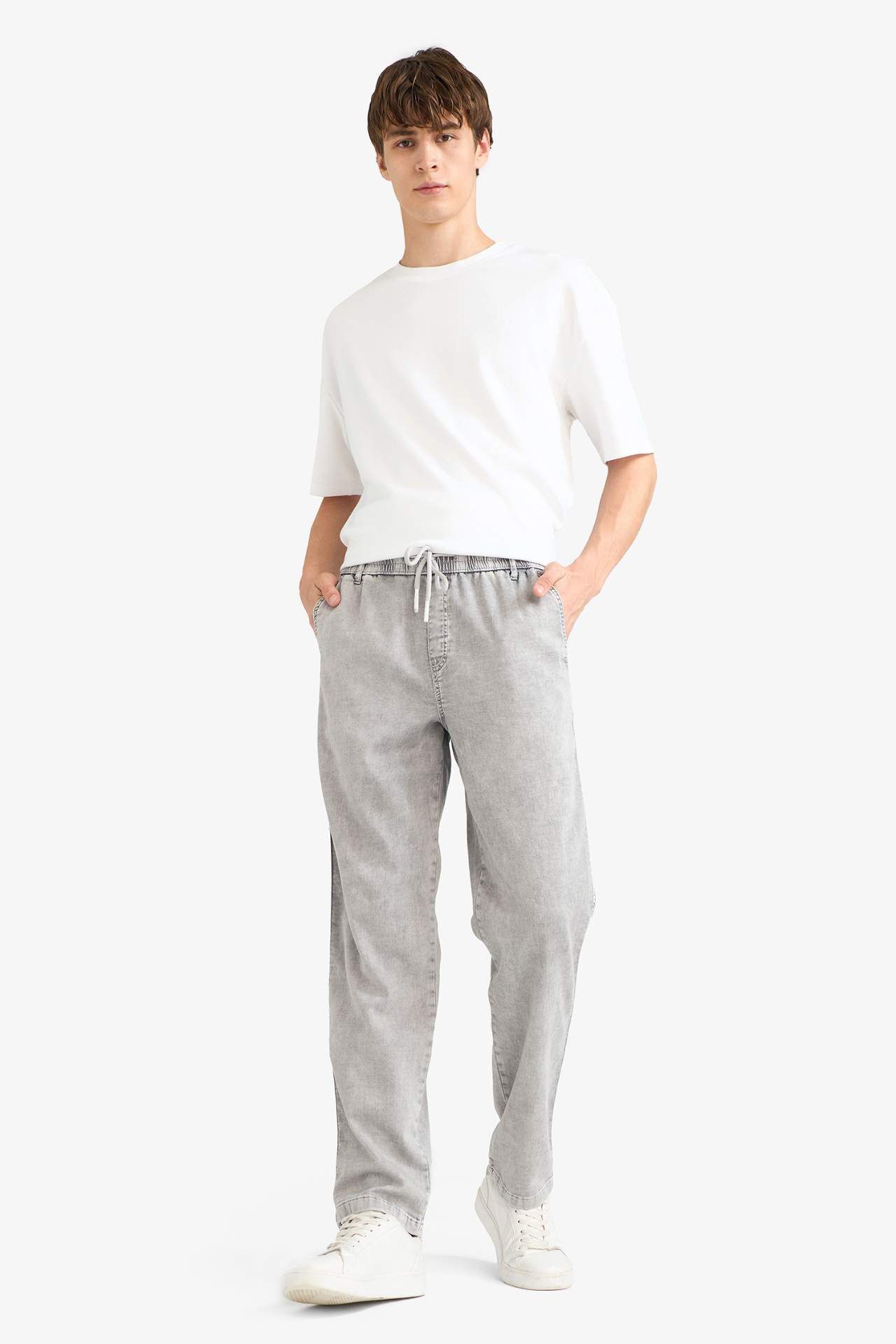 Wide Leg Geniş Paça Beli Bağcıklı Jean Kar Yıkamalı Pantolon