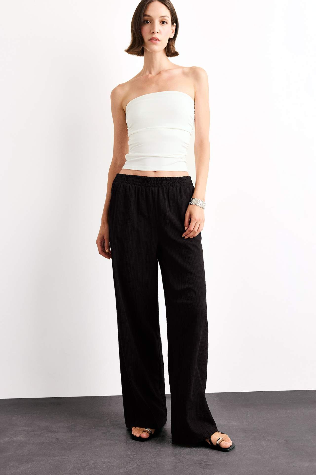 DeFacto Wide Leg Geniş Paça Cepli Yüksek Lastikli Bel Pantolon A9129AX25SMBK81