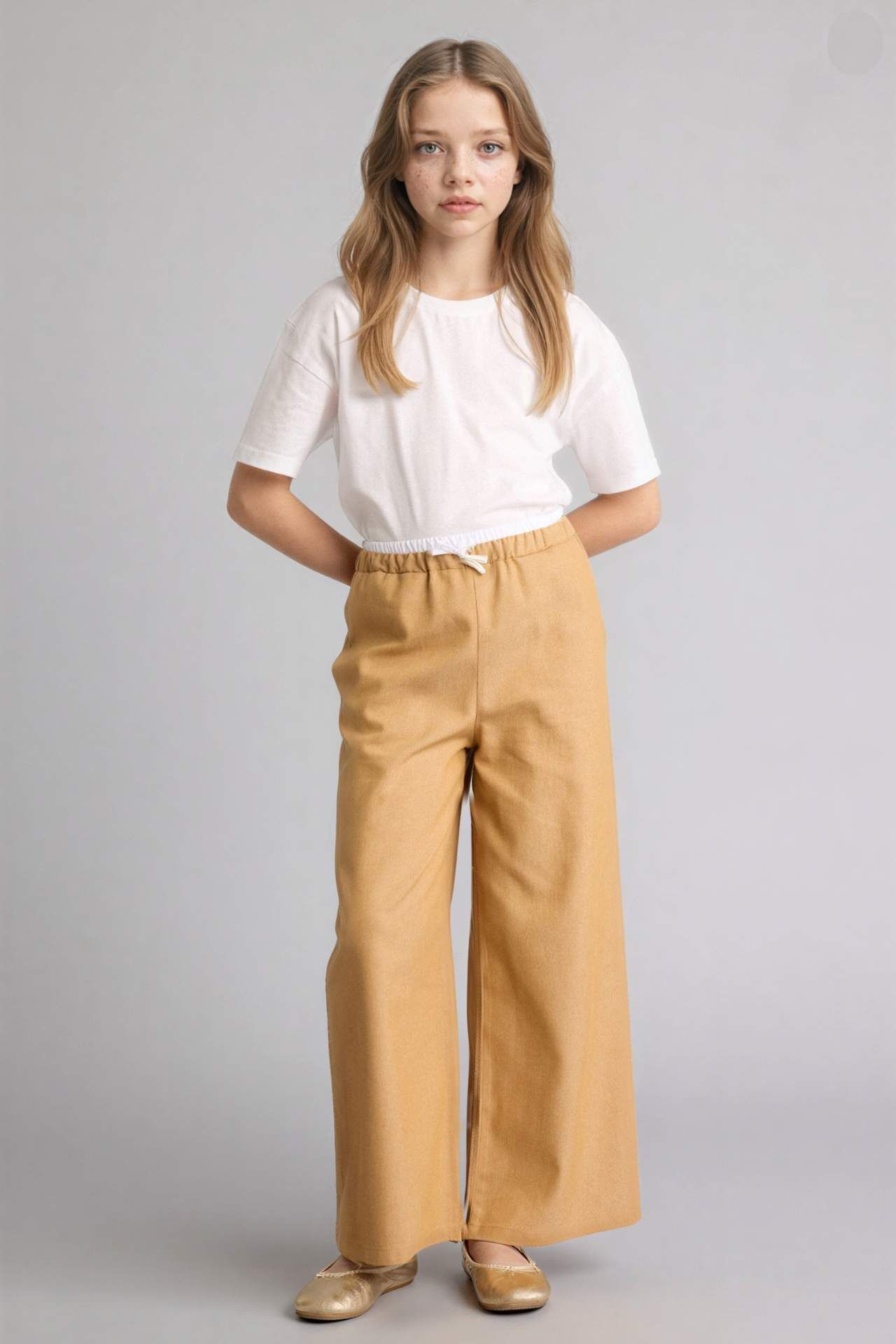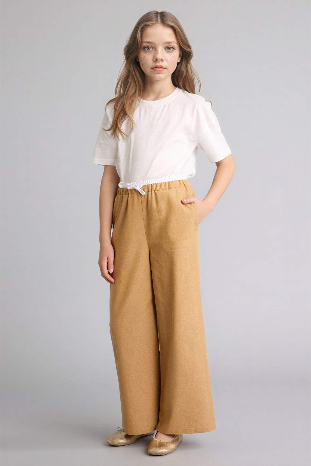 Geniş paça tasarımı ve şık jean görünümlü kumaşıyla kız çocuk pantolon, hem rahat hem de trend bir stil sunar. Günlük kombinlerde veya özel günlerde kolayca tercih edilebilecek şık bir parçadır. Pamuk 58%,Viskoz 42% Manken Bedeni: Göğüs: 62 Boy: 1,24 Basen: 73 Bel: 53