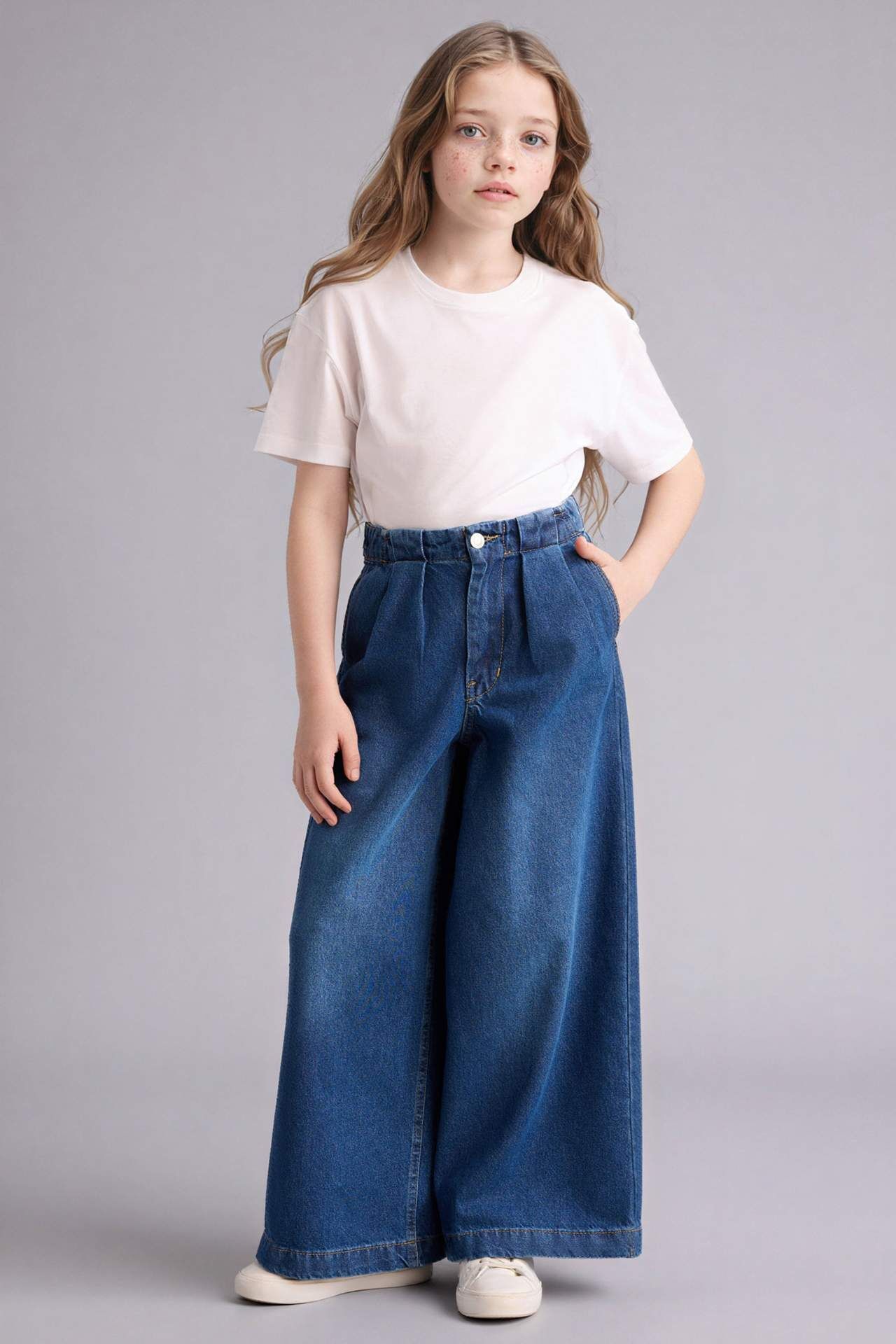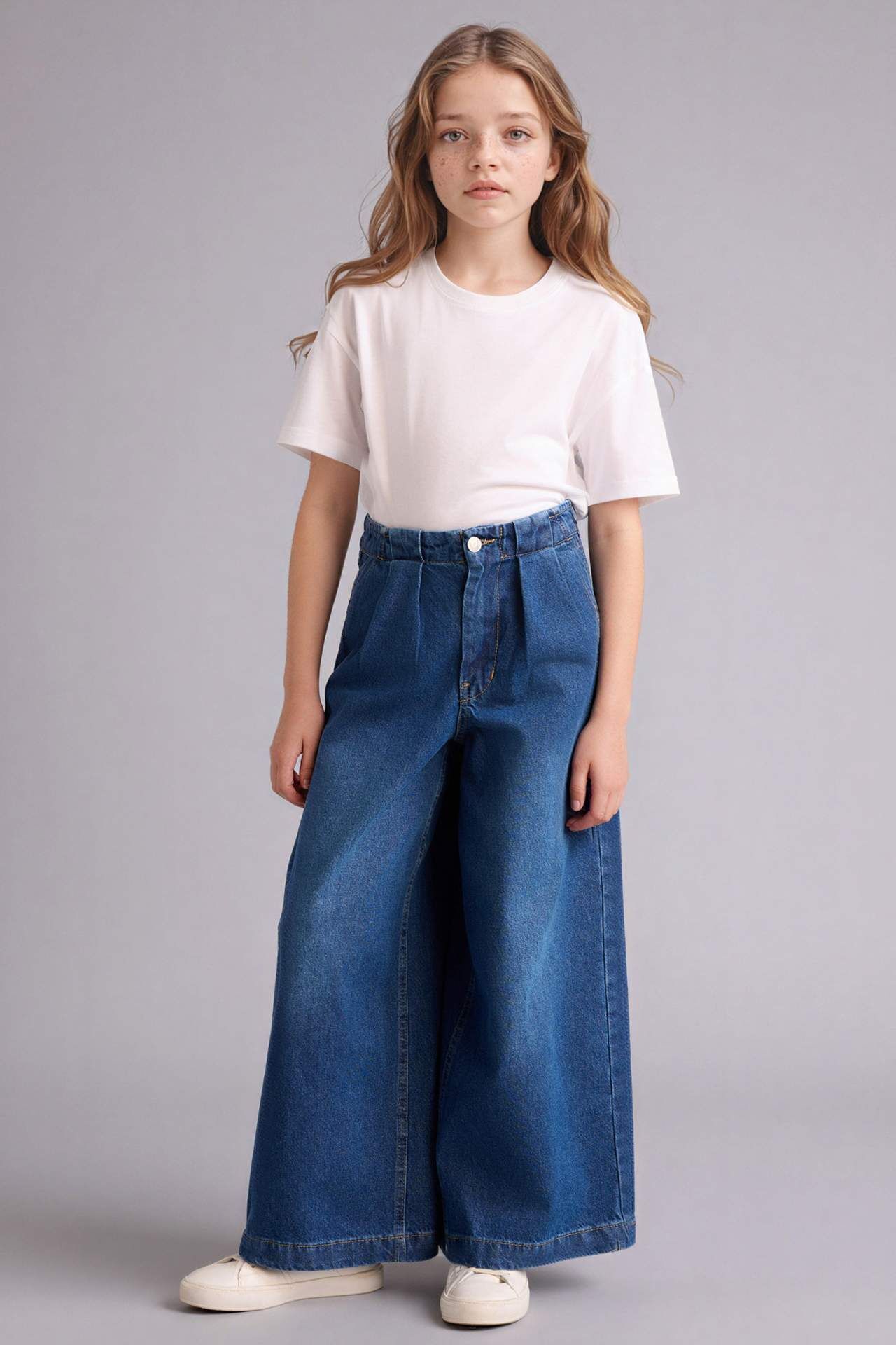 Wıde Leg Geniş Paça Jean Pantolon Kız Çocuk