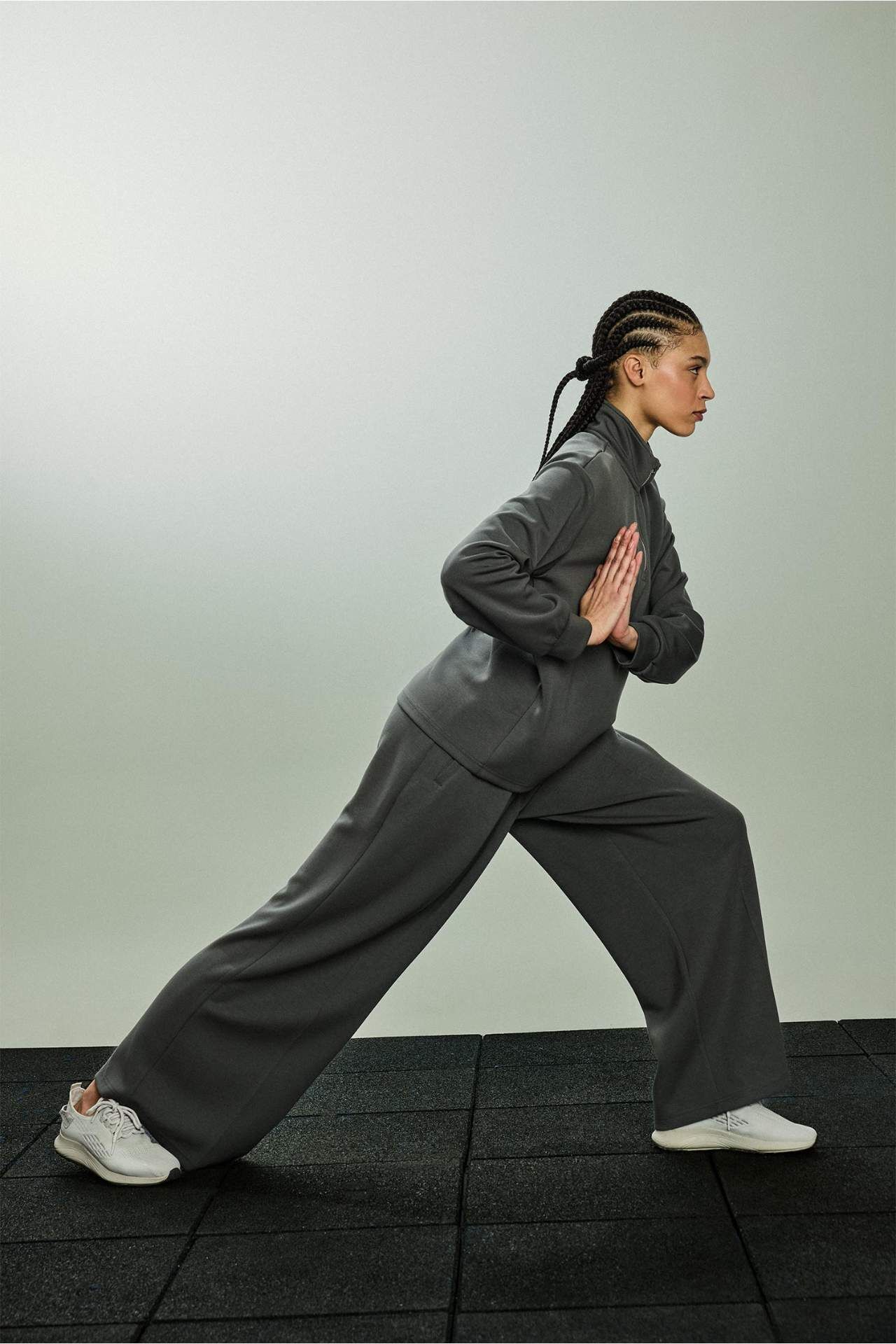 Yumuşak ve esnek modal kumaşıyla öne çıkan wide leg geniş paça standart boy eşofman altı, rahat kesimi ve modern tasarımıyla gün boyu konforlu ve şık bir kullanım sağlar. Elastan 6%,Modal 55%,Poliester 39% Manken Bedeni: Göğüs: 82 Boy: 1,78 Basen: 88 Bel: 60